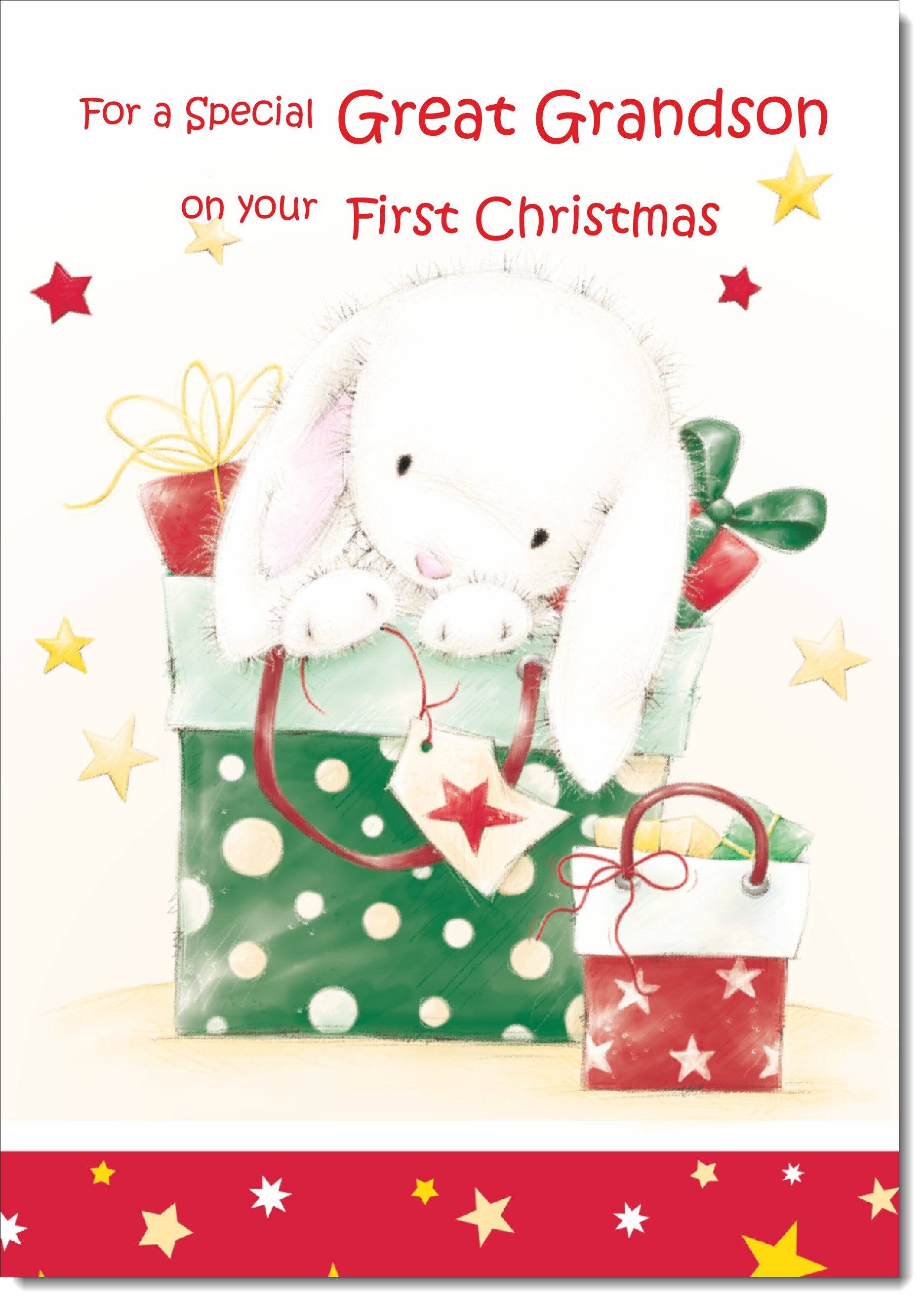 Great Grandsons 1st Christmas Card Cute Rabbit with Parcels