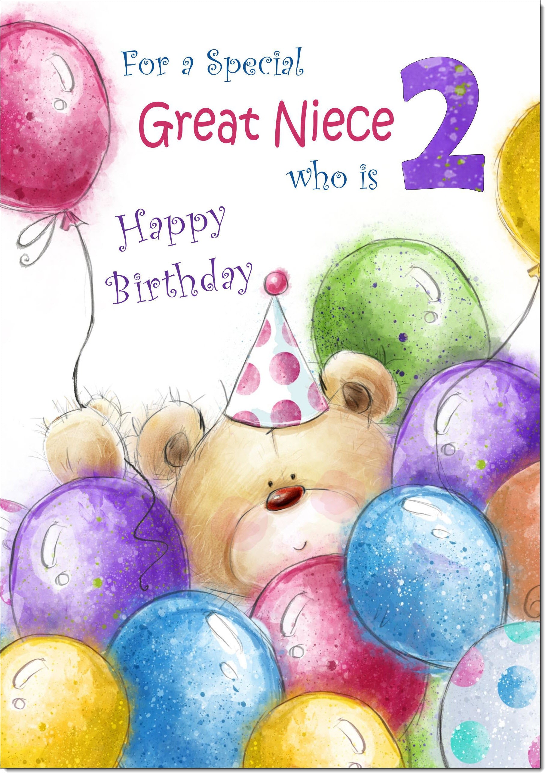 Great Niece 2nd Birthday Card Age 2 Cute Teddy Bear in Balloons