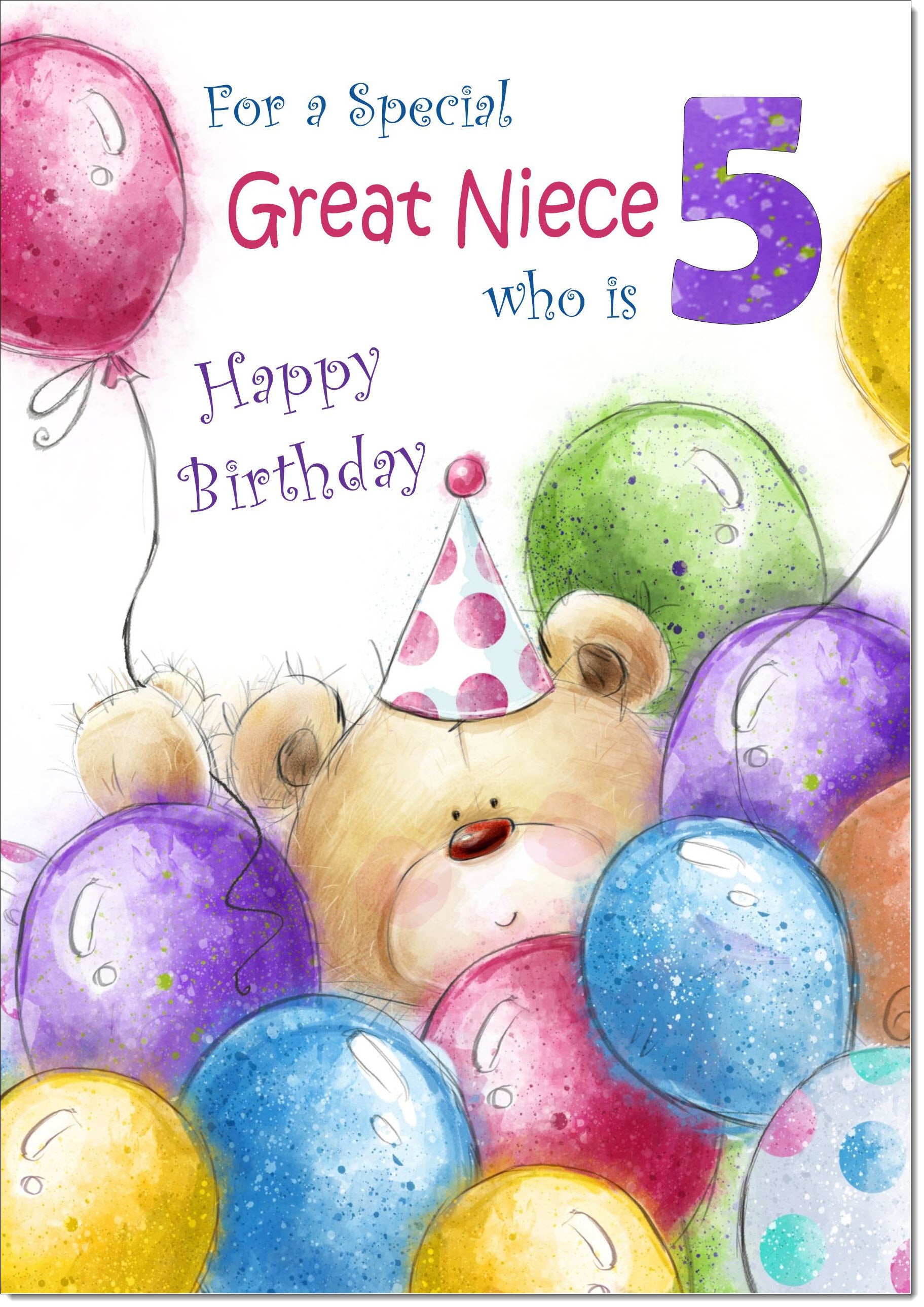 Great Niece 5th Birthday Card Age 5 Cute Teddy Bear in Balloons