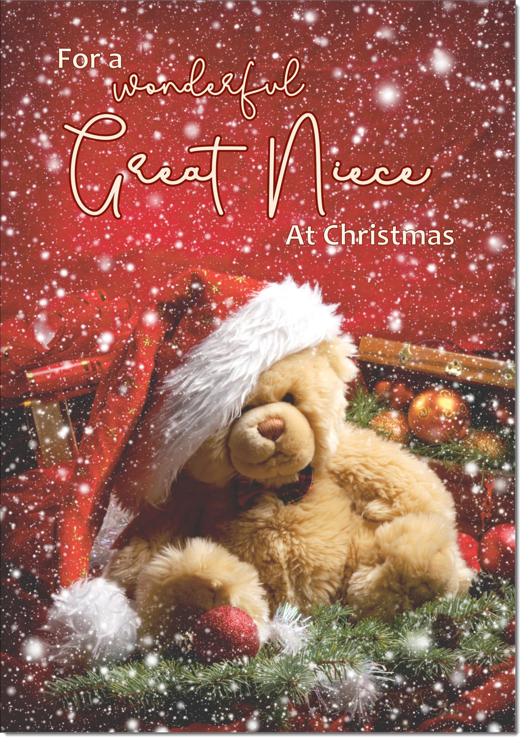 Great Niece Christmas Card Teddy Bear in Santa Hat