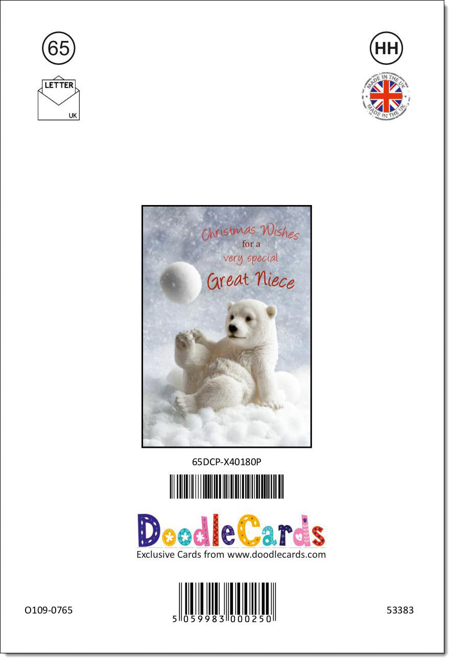 Great Niece Christmas Card Polar Bear and Snowball