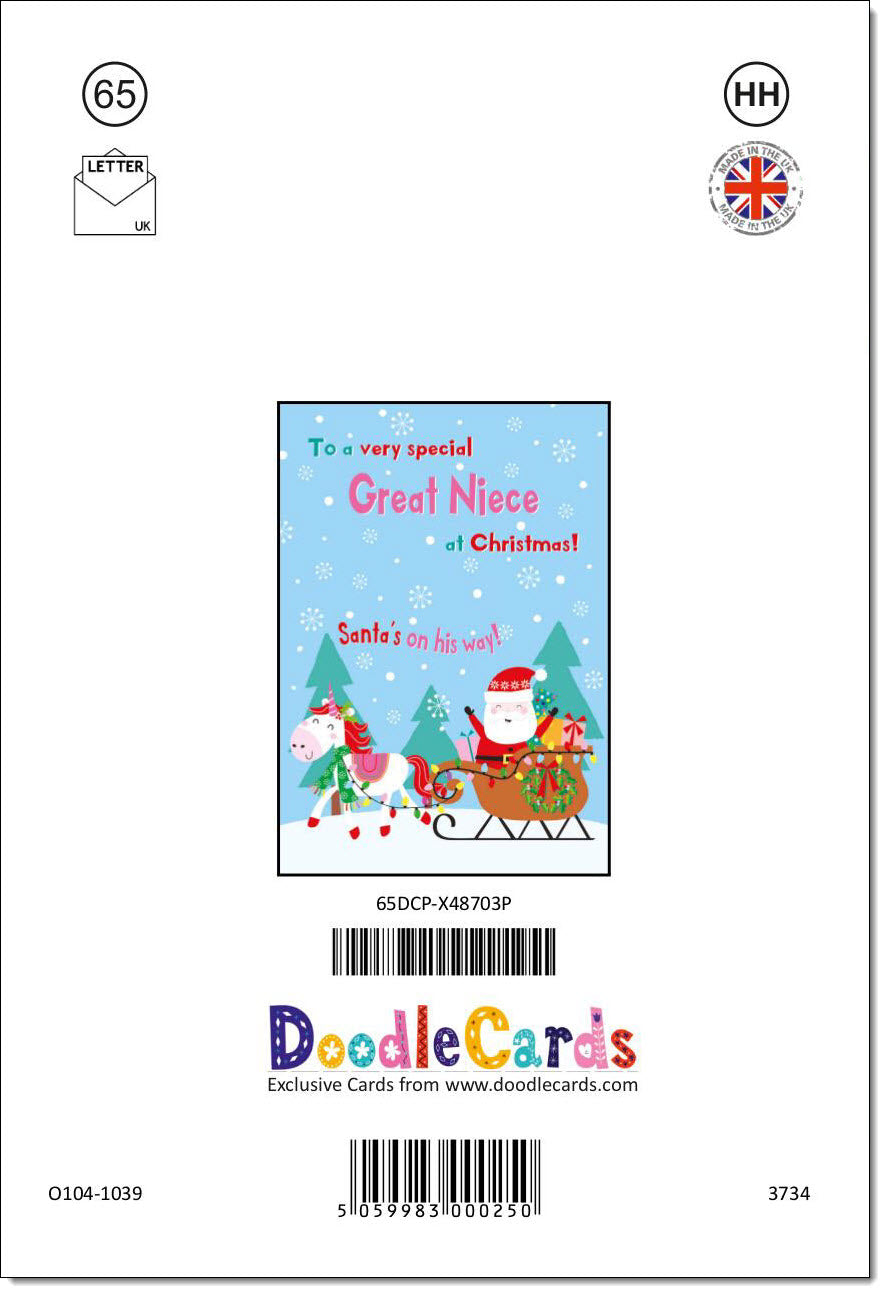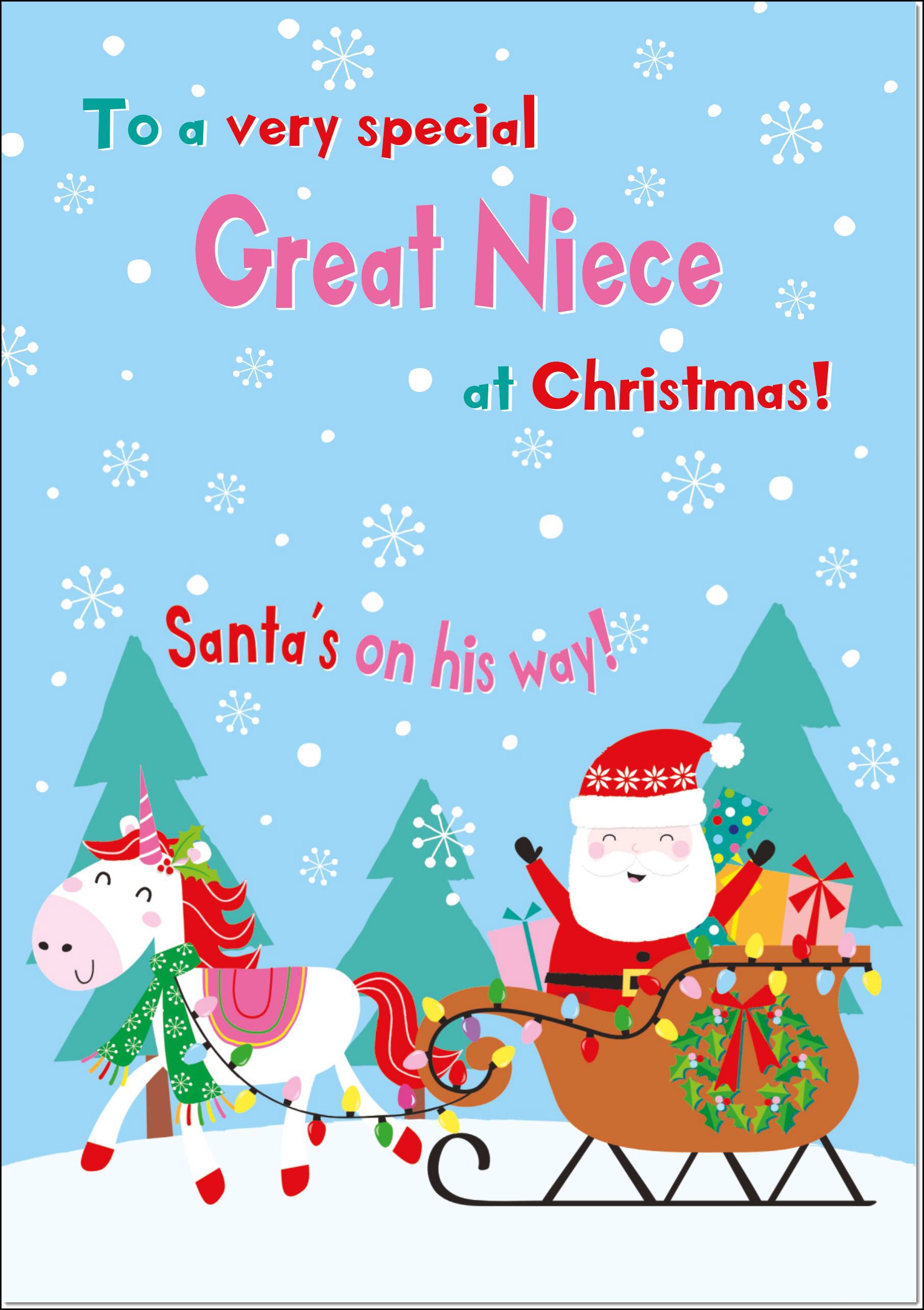 Great Niece Christmas Card Magic Santa's Sleigh With Unicorn