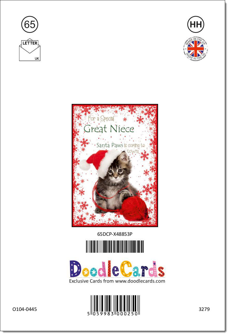 Great Niece Christmas Card Cute Santa Paws Kitten Cat Pet