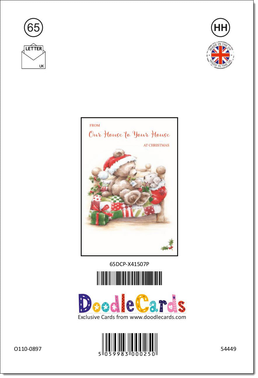 House To House Christmas Card Cute Bear on Bed