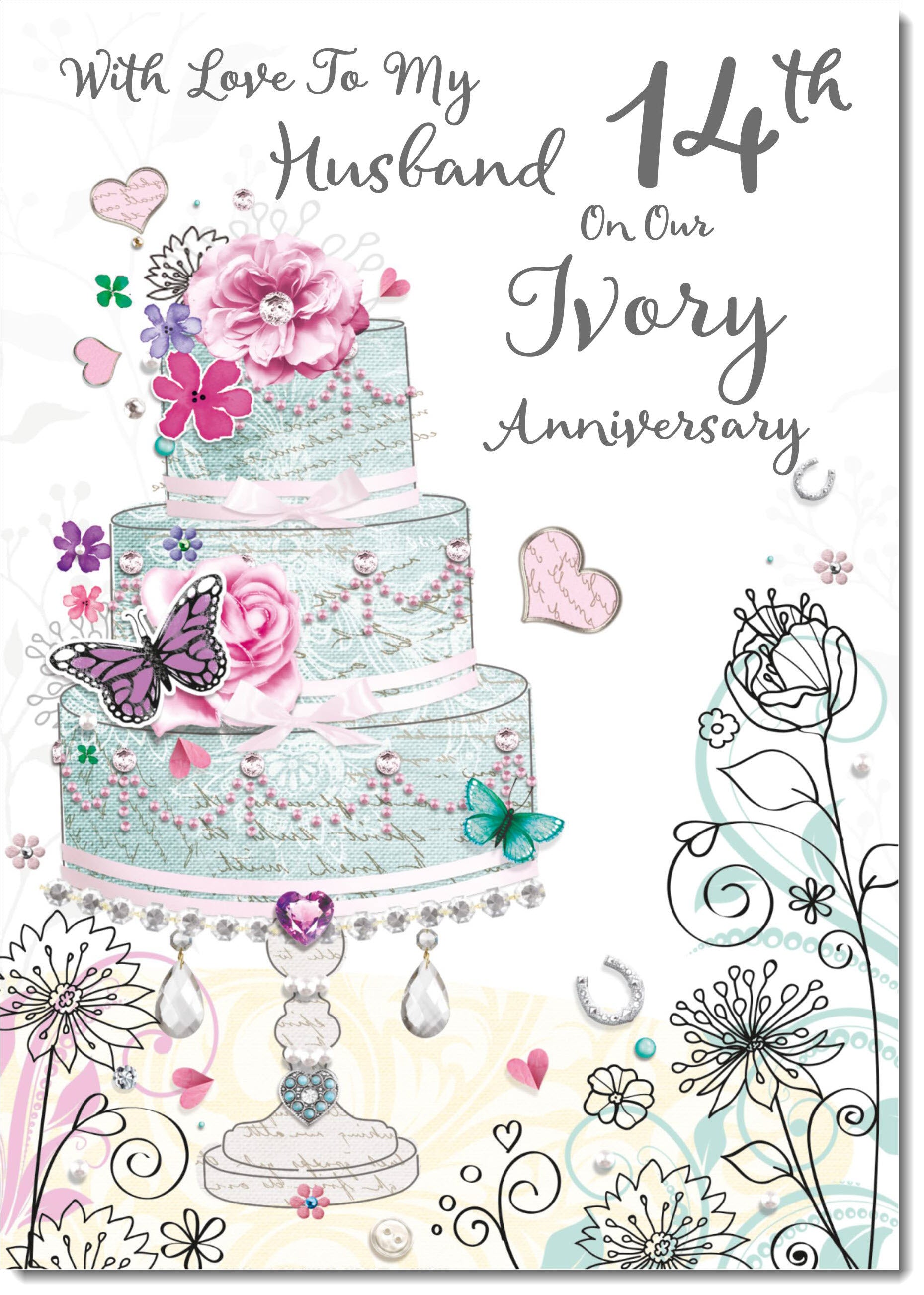 Husband Ivory 14th Wedding Anniversary Card Wedding Cake