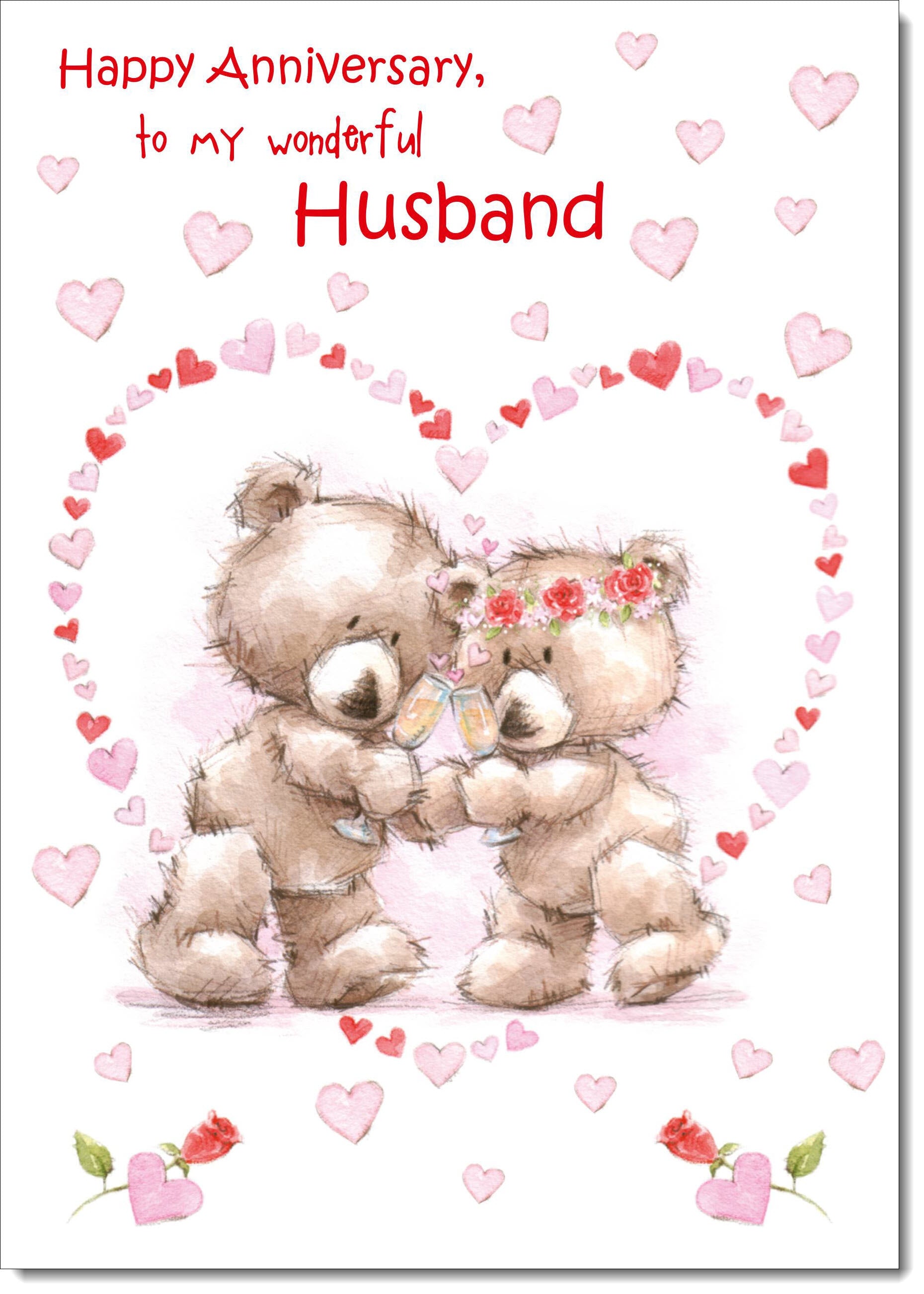 Husband Wedding Anniversary Card Cute Teddy Couple in Love