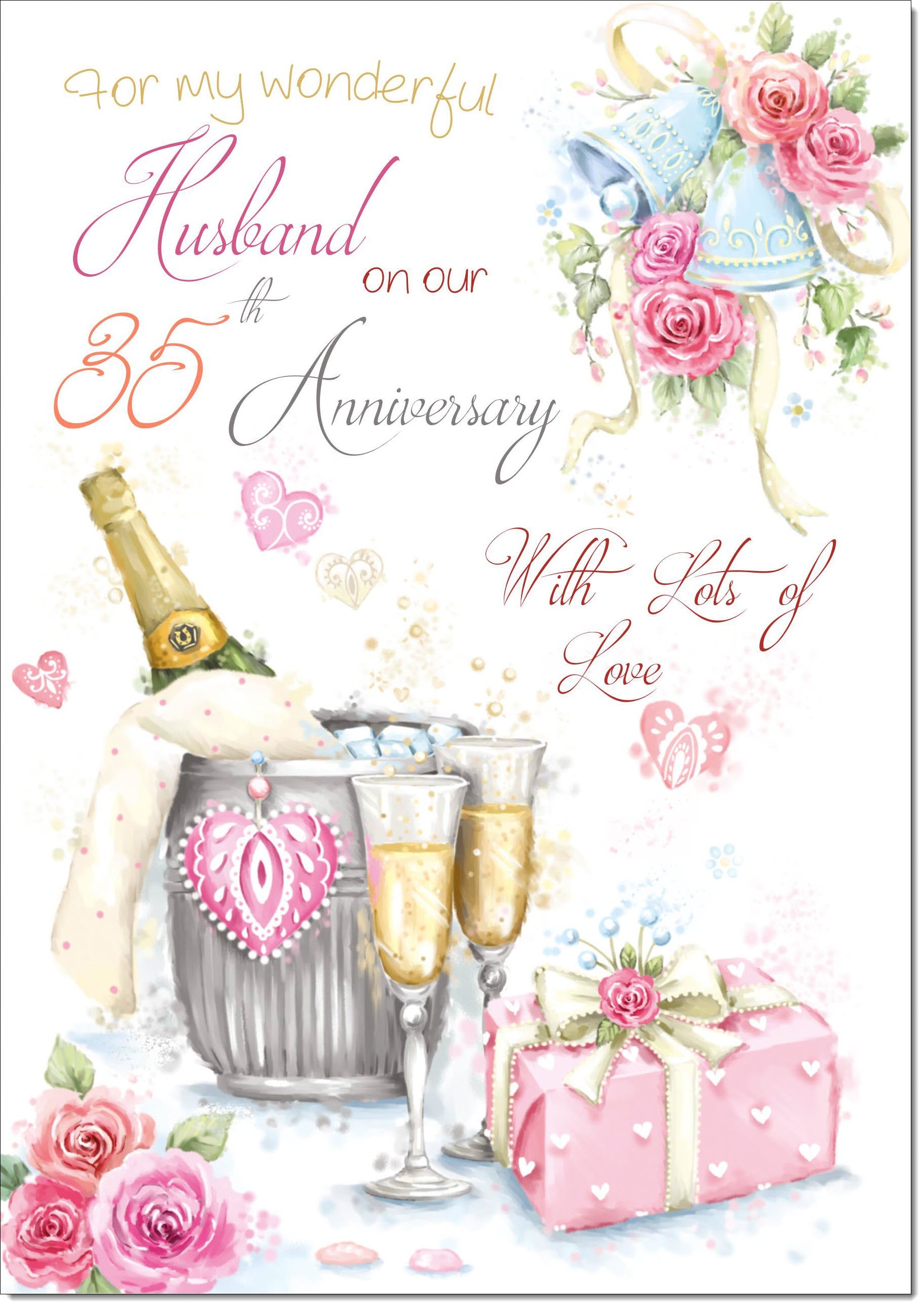 Husband Coral 35th Wedding Anniversary Card Champagne Bucket