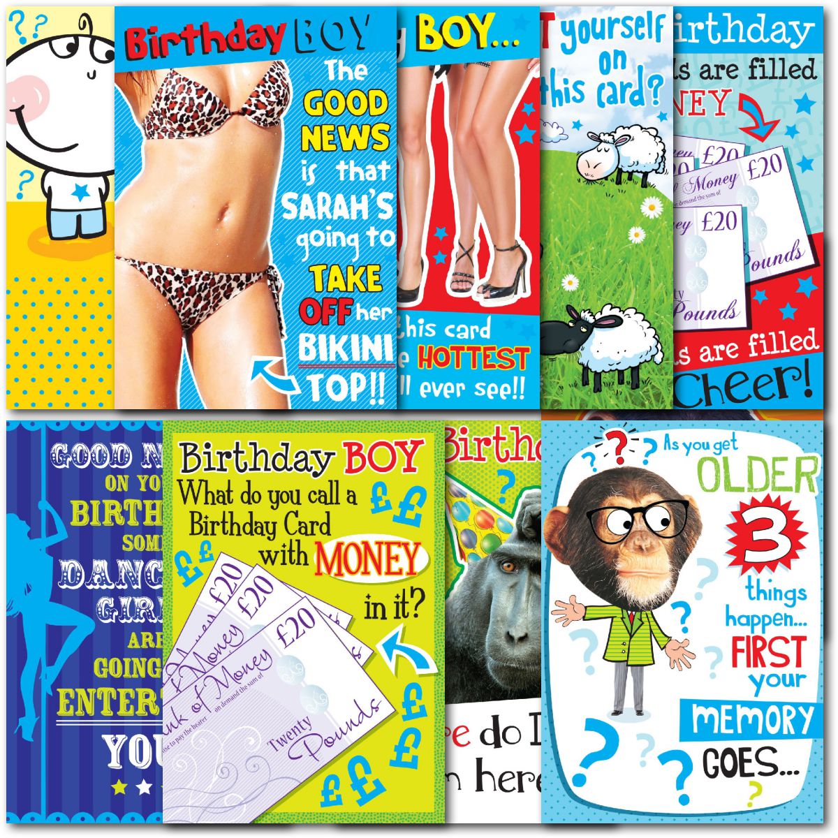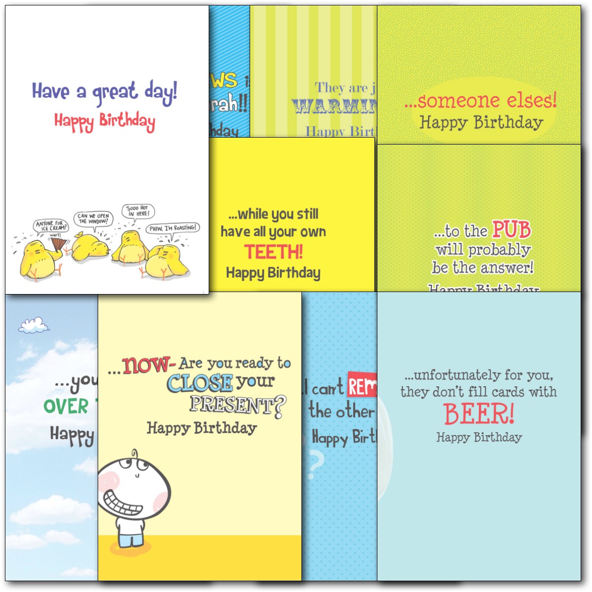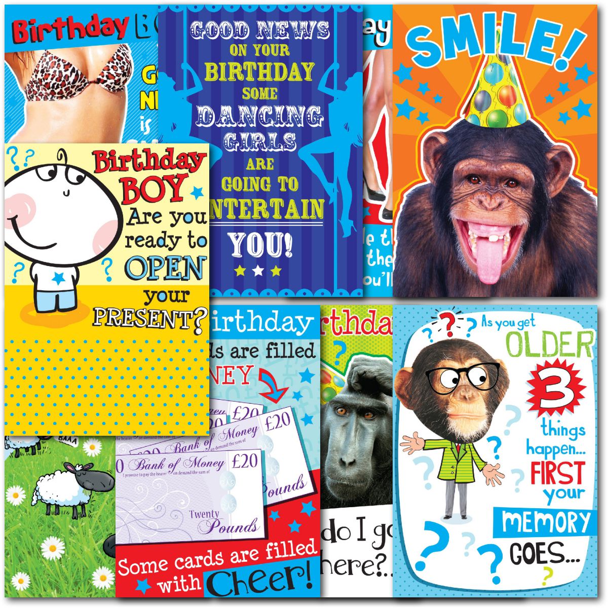 Pack of 10 Funny Humorous Male Birthday Cards - Clean Humour