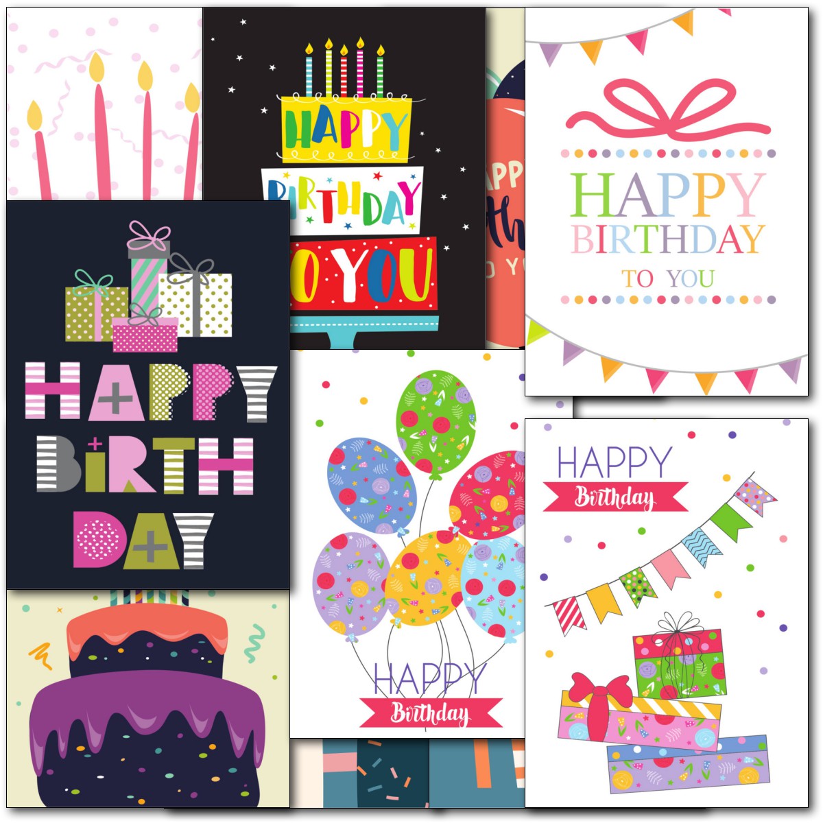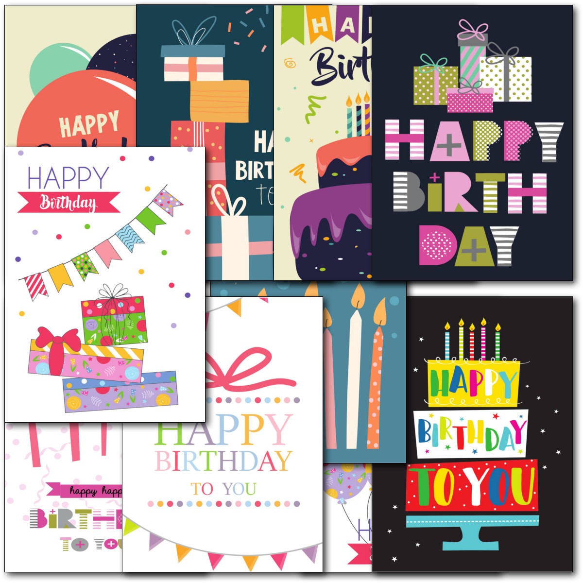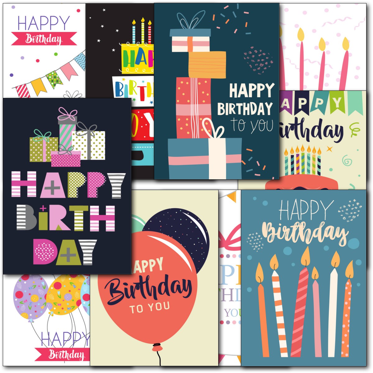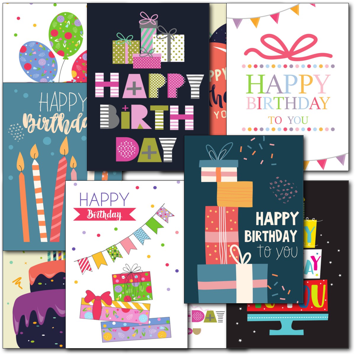 HAPPY BIRTHDAY MULTIPACK ⭐Pack of 10 high quality birthday cards - 10 Different Designs ⭐ Professionally printed ⭐ Supplied with white envelopes⭐