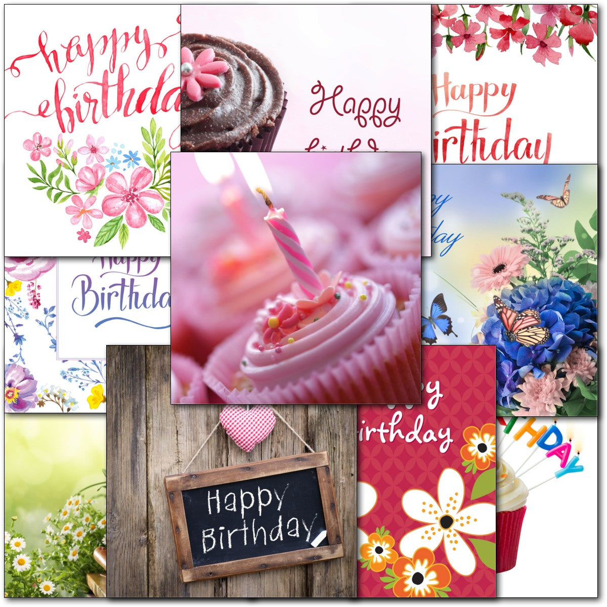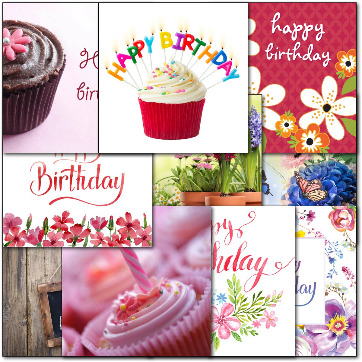 FEMALE CARDS MULTIPACK ⭐Pack of 10 high quality flowers, floral, cupcake cards - 10 Different Designs ⭐ Professionally printed ⭐ Supplied with white envelopes ⭐