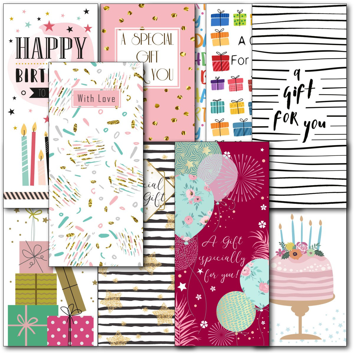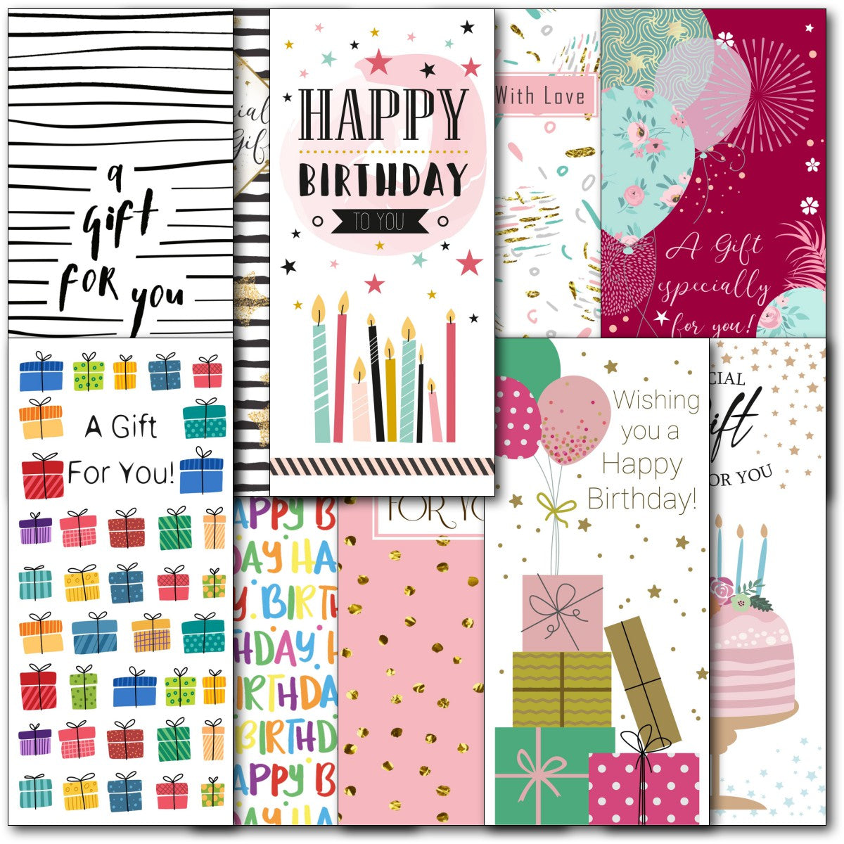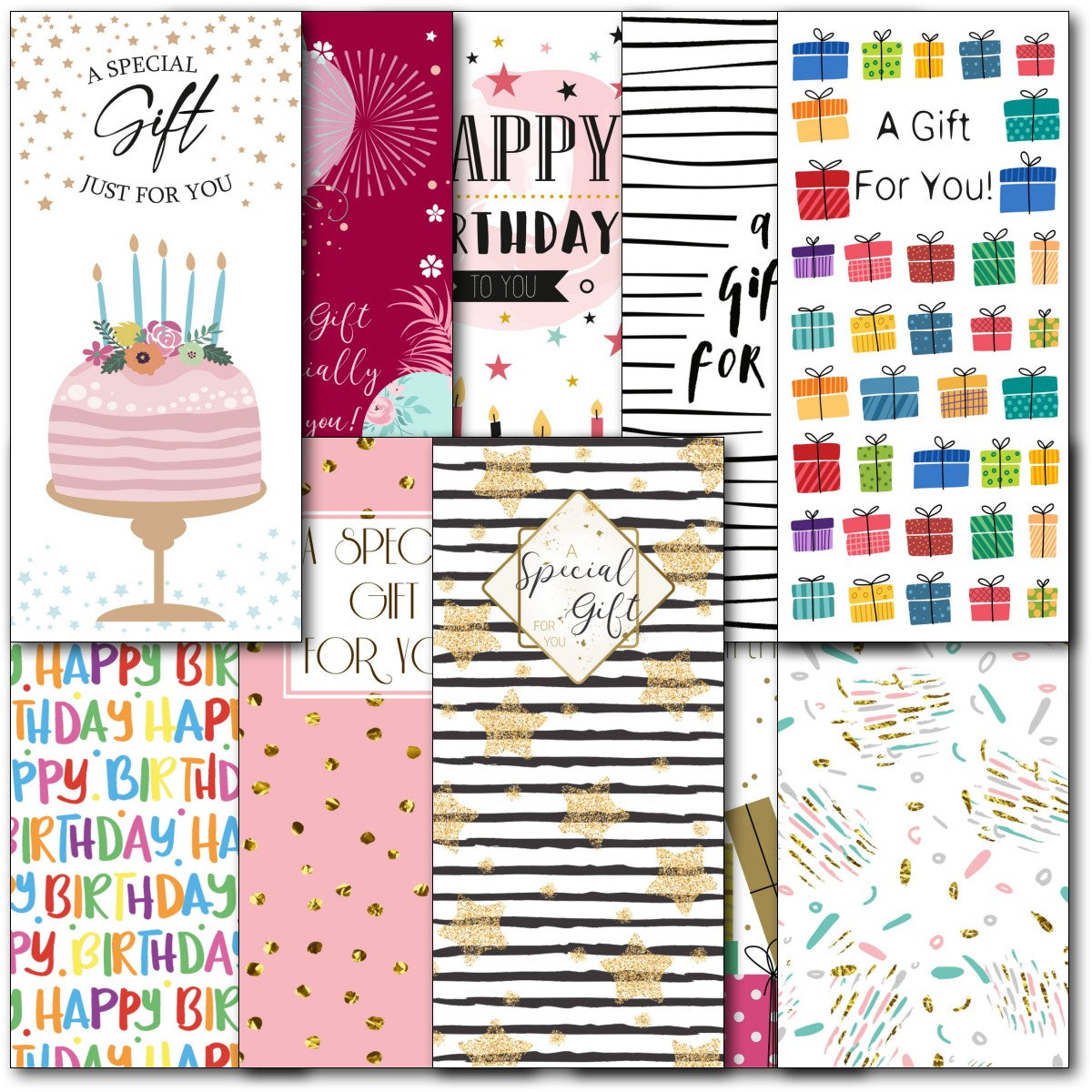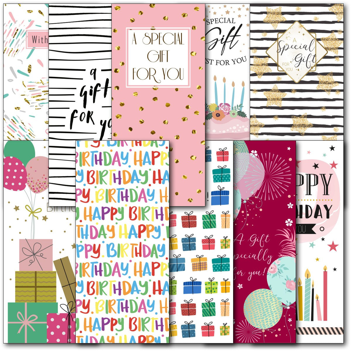 • BIRTHDAY MONEYWALLETS ⭐Pack of 10 high quality money wallets - 10 Different Designs ⭐ Professionally printed ⭐ Supplied with white envelopes⭐