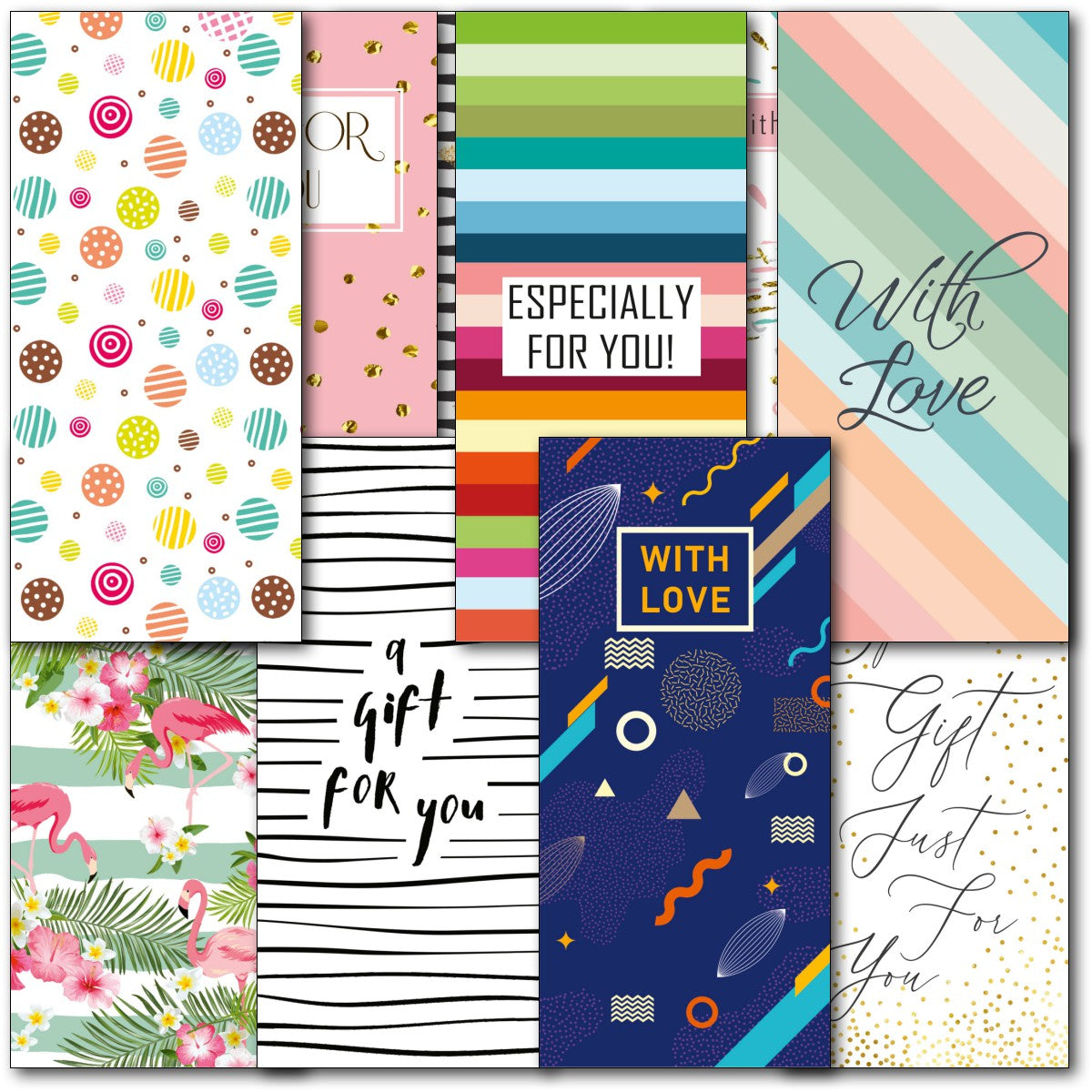BIRTHDAY & OCCASION MONEYWALLETS ⭐Pack of 10 high quality money wallets - 10 Different Designs ⭐ Professionally printed ⭐ Supplied with white envelopes⭐