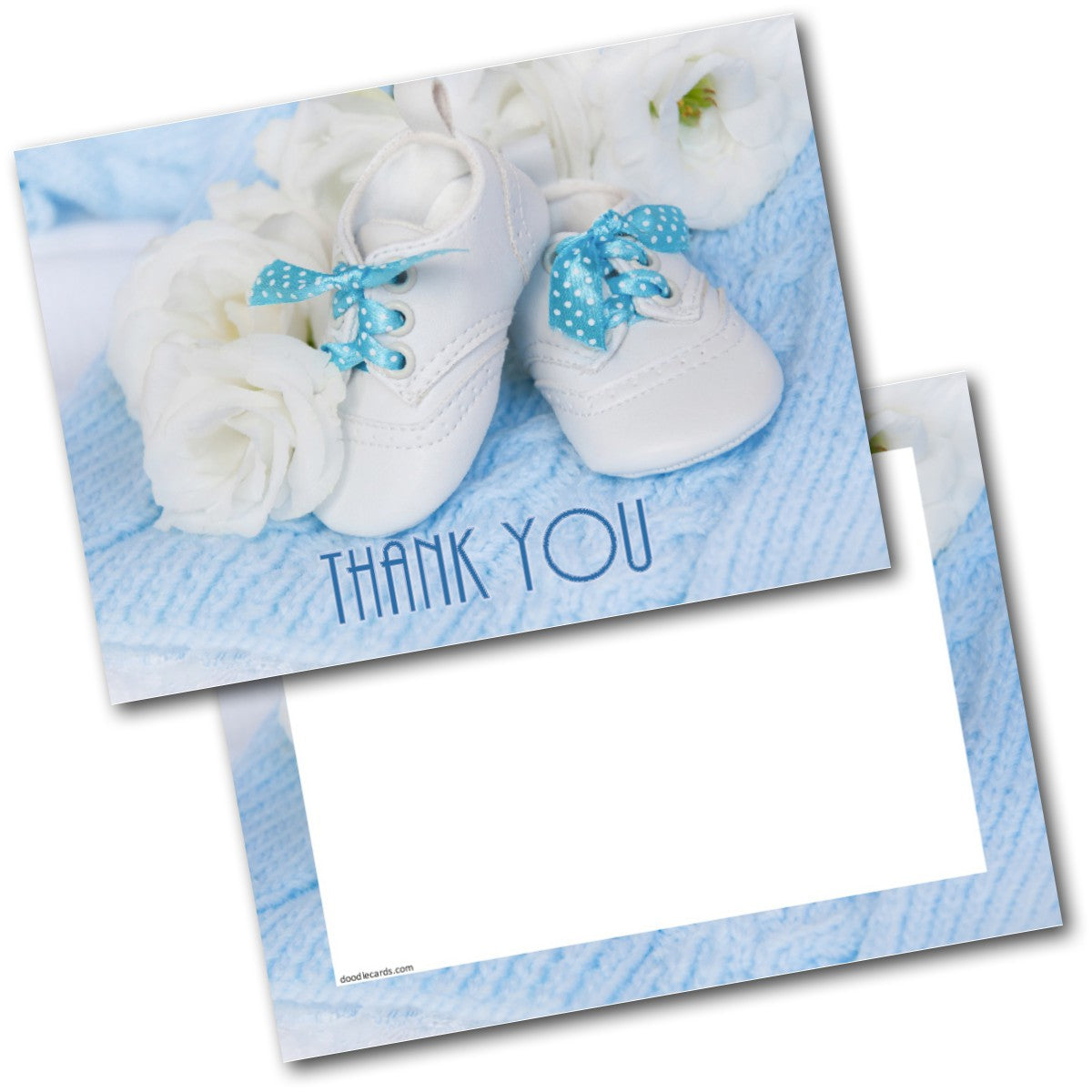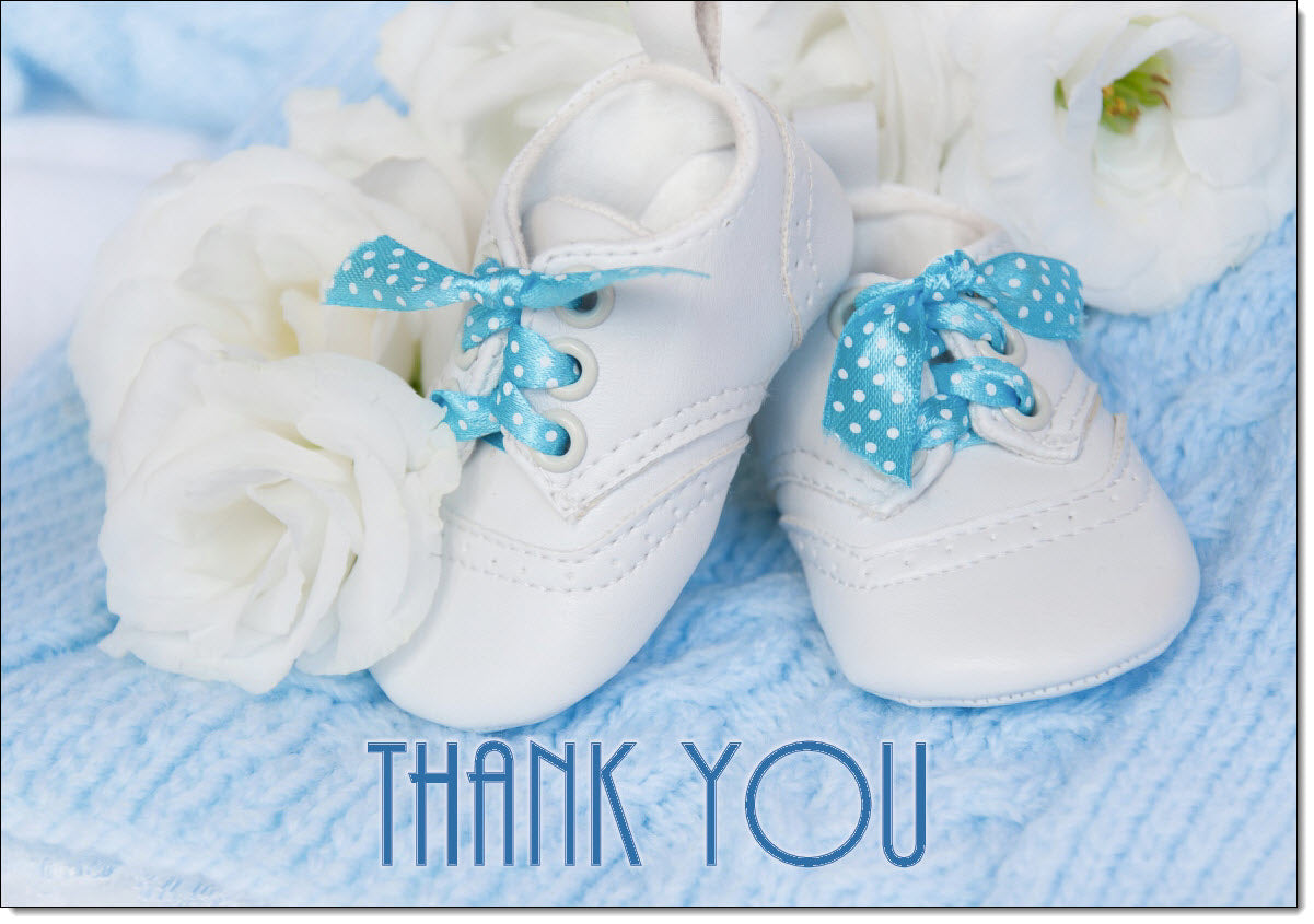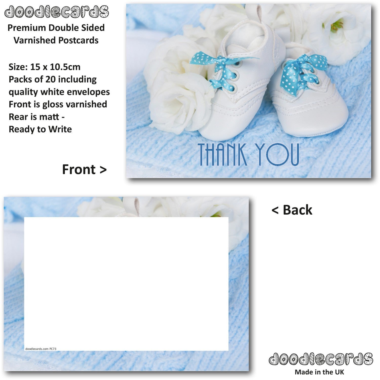Thank You Baby Gift Thankyou Shoes Blue Boys Male Pack of 20 Cards & Envelopes