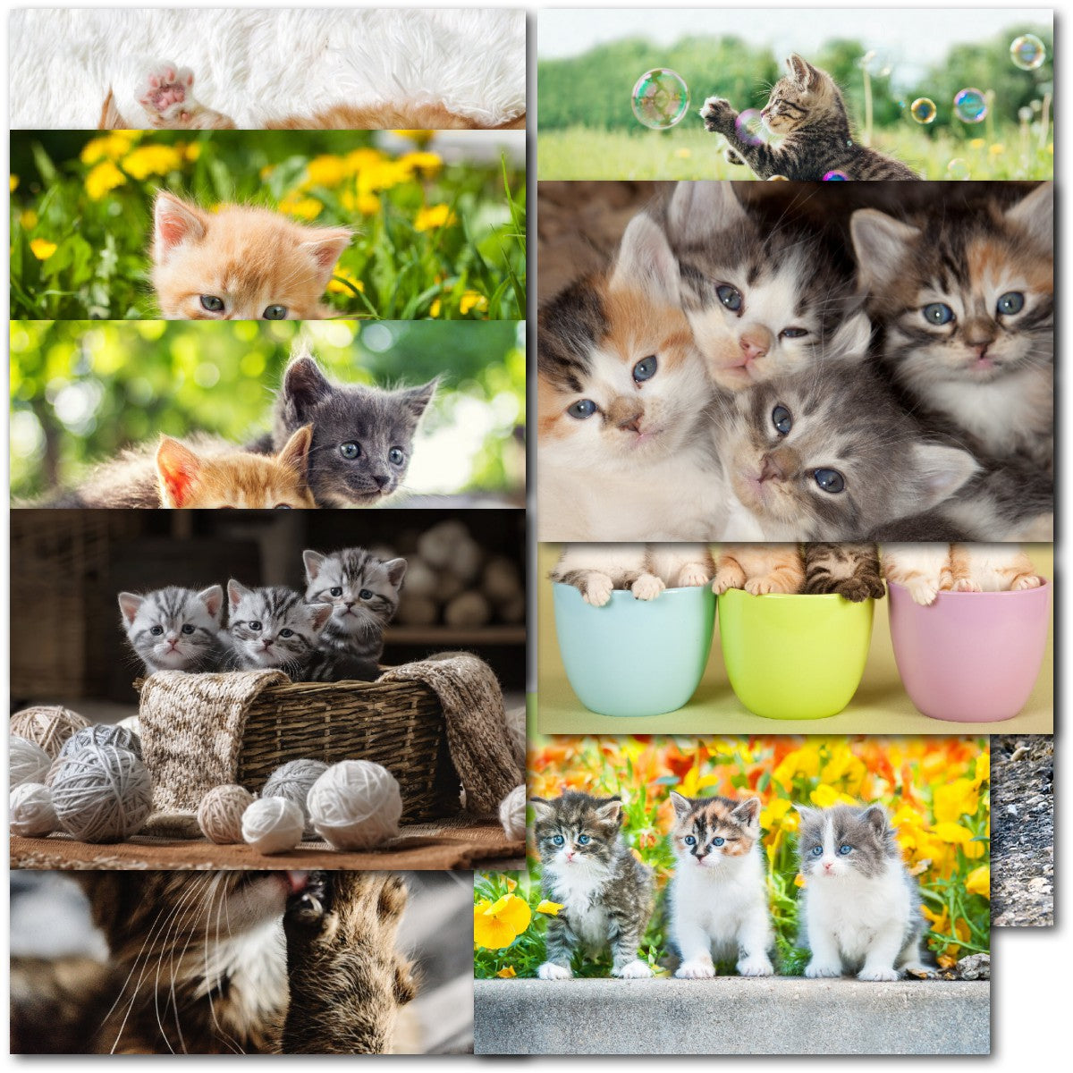 DESIGNS ⭐No more than one card of any design. Therefore pack consists of 10 different cards as shown. Cats, Kitten, Kittens⭐