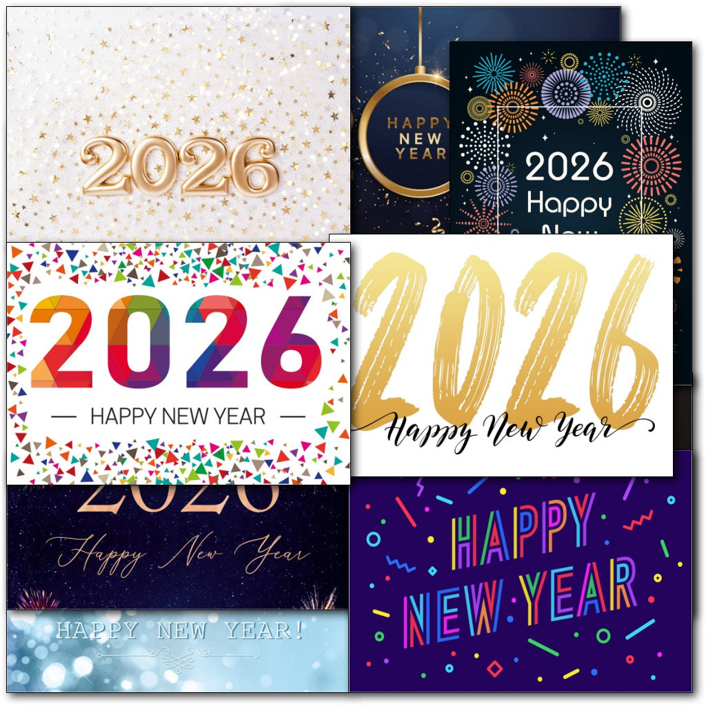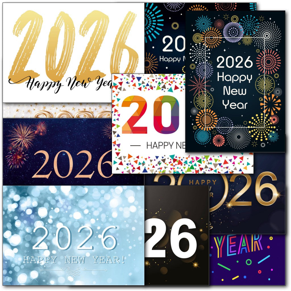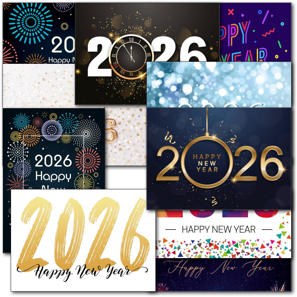 NEW YEAR CARDS MULTIPACK ⭐Pack of 10 high quality New Year cards - 10 Different Designs ⭐ Professionally printed ⭐ Supplied with white envelopes⭐
