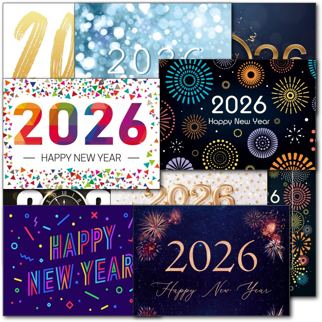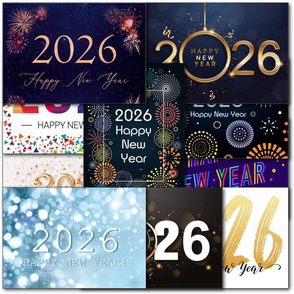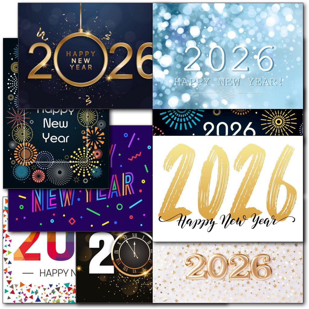 NEW YEAR CARDS MULTIPACK ⭐Pack of 10 high quality New Year cards - 10 Different Designs ⭐ Professionally printed ⭐ Supplied with white envelopes⭐
