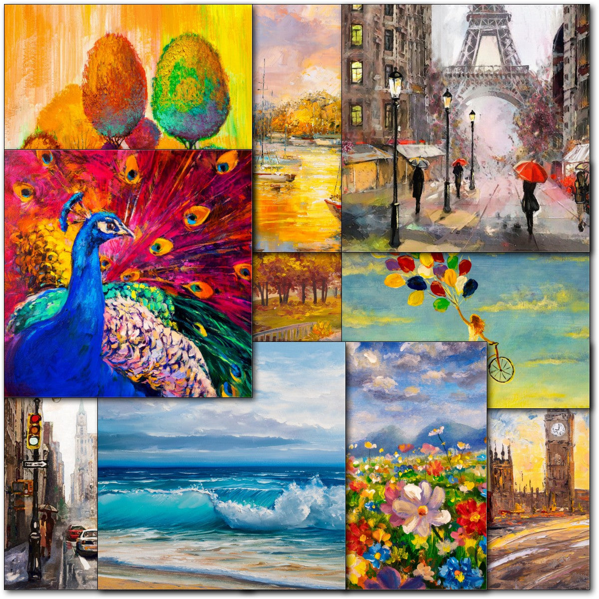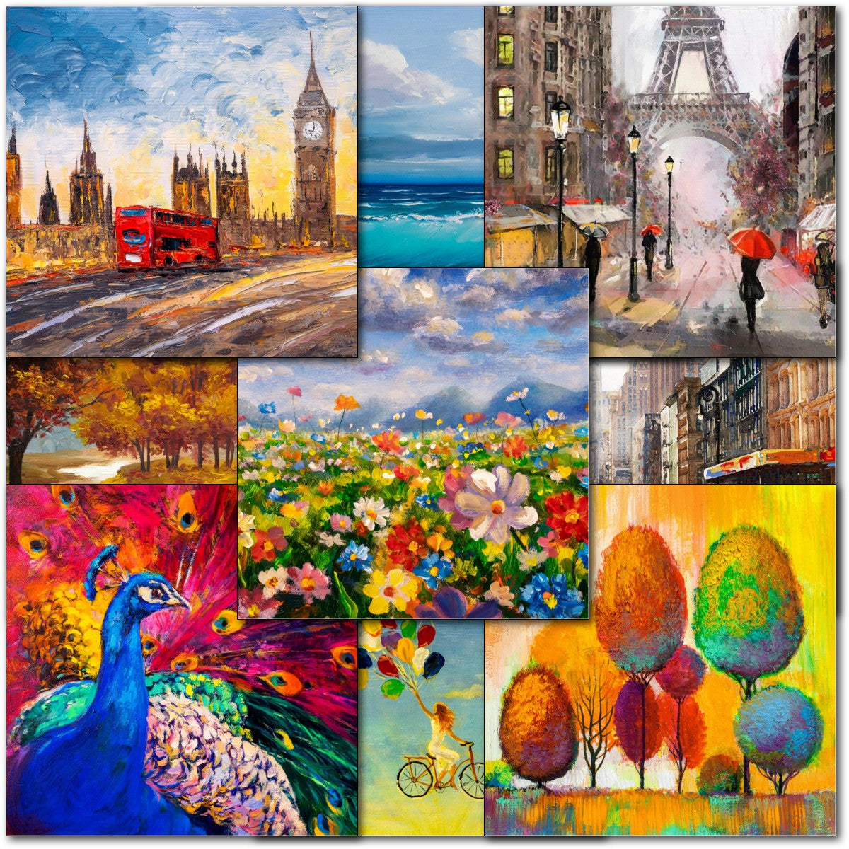 DESIGNS ⭐No more than one card of any design. Therefore pack consists of 10 different cards as shown. London Houses of Parliament Big Ben Sea Waves Beach Paris Floral Flowers Trees Peacock Eiffel Tower Boats Bicycle Balloons ⭐