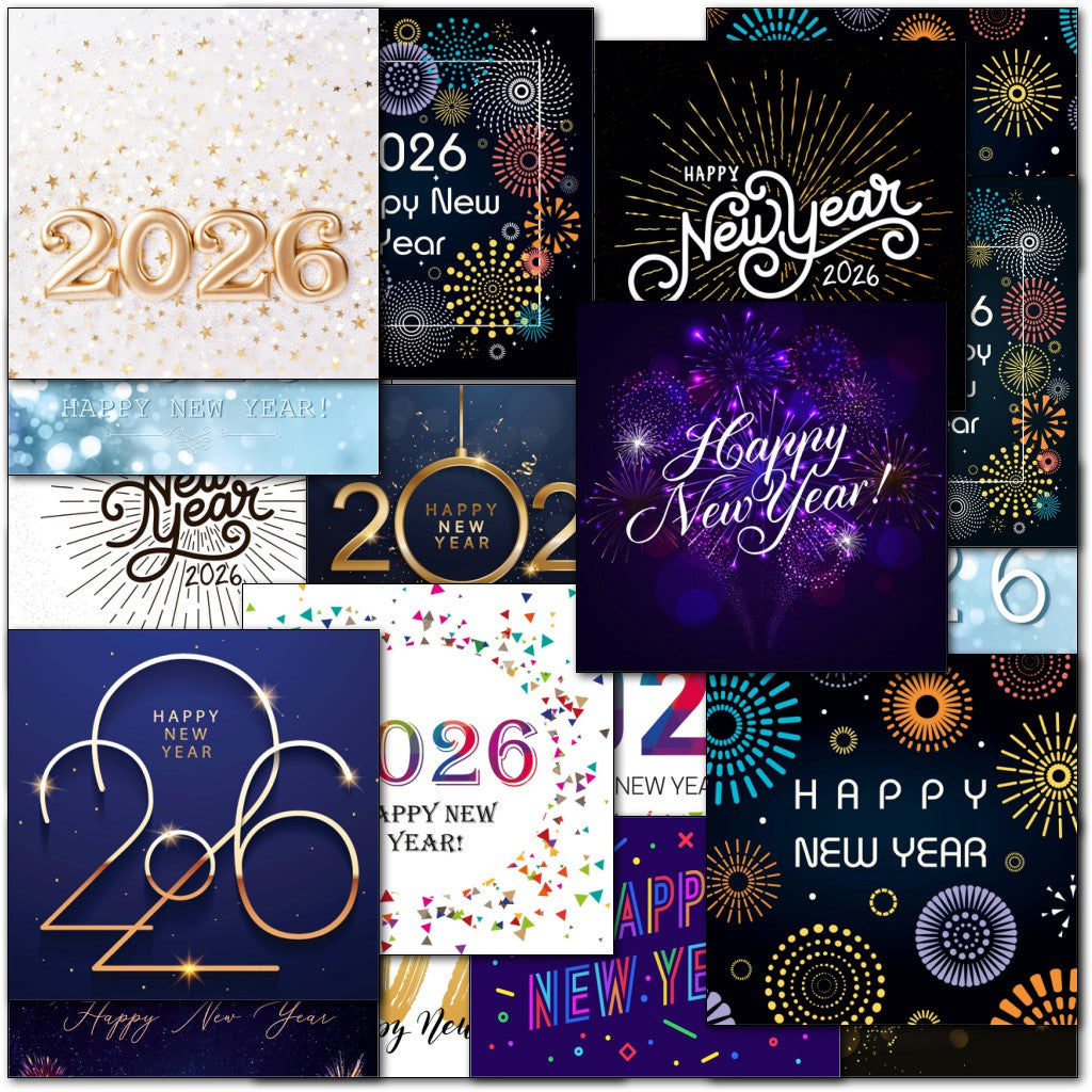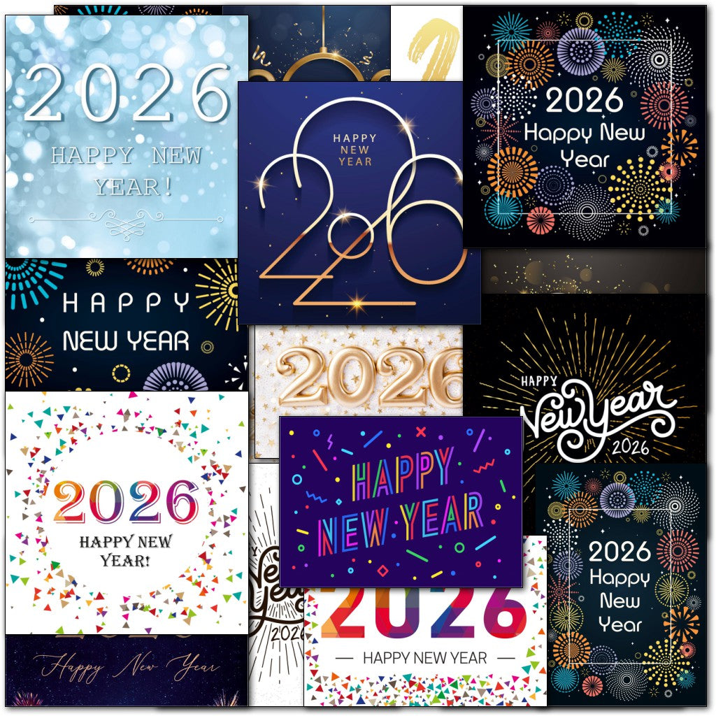 NEW YEAR MULTIPACK ⭐Pack of 20 high quality New Year cards - 20 Different Designs ⭐ Professionally printed ⭐ Supplied with white envelopes⭐