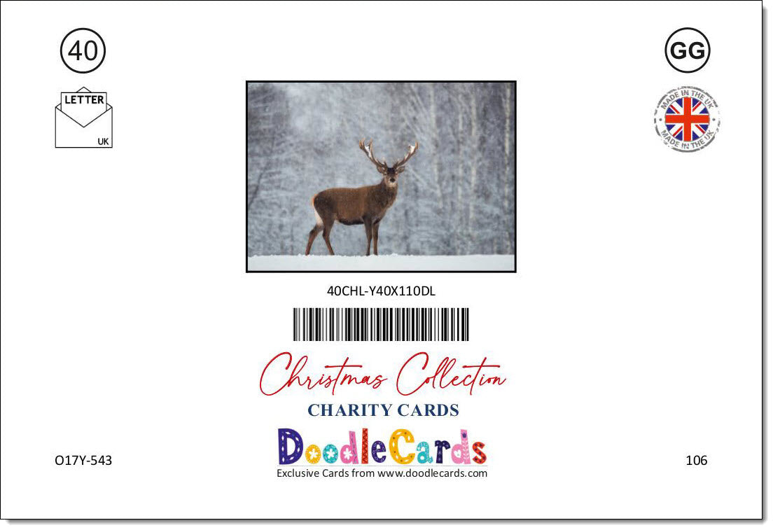 Pack of 10 Charity Christmas Cards Red Deer Stag in the Snow