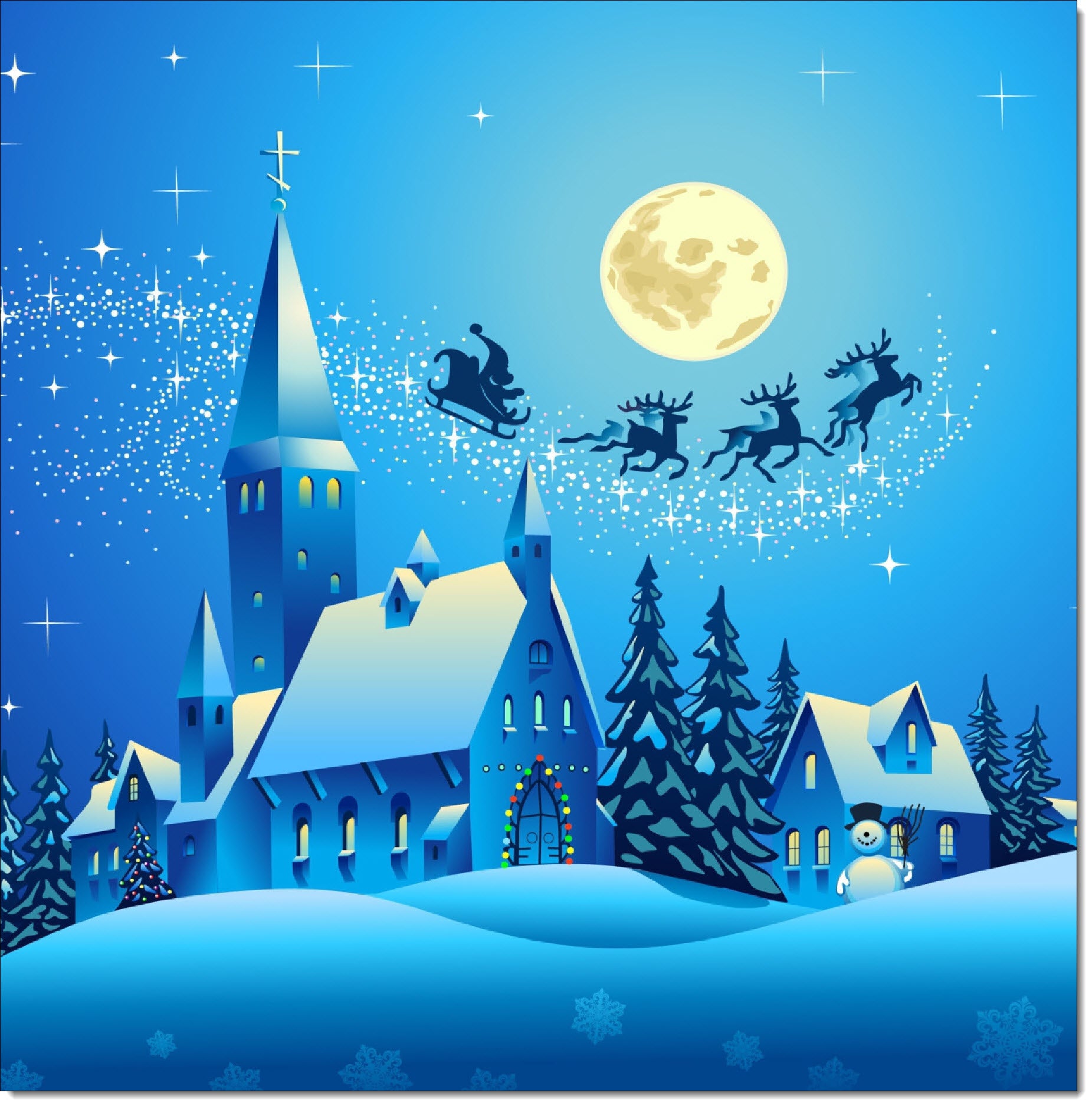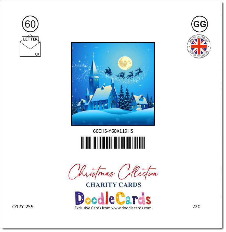 Pack of 10 Square Charity Christmas Cards Santas Sleigh