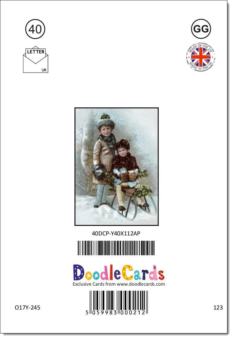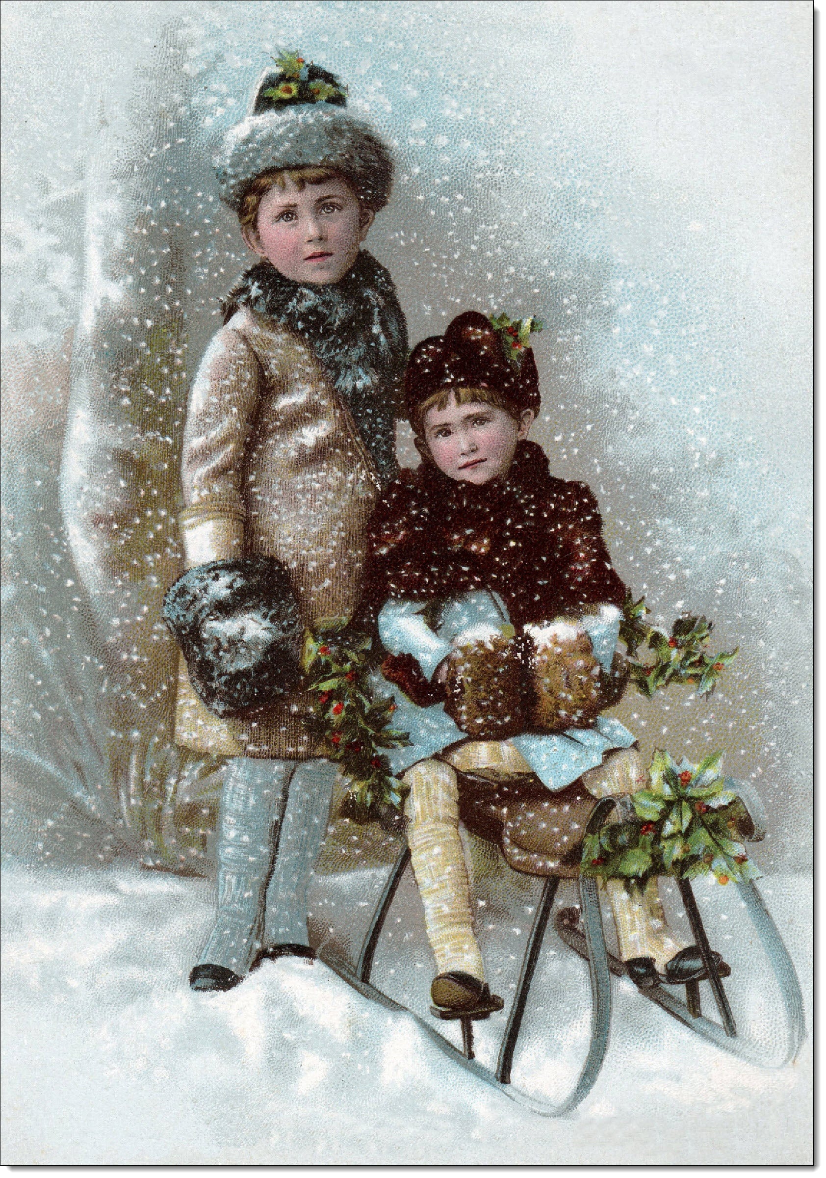 Pack of 10 Christmas Cards Victorian Children on a Toboggan