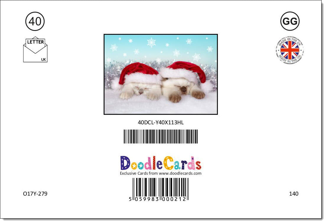 Pack of 10 Christmas Cards Ragdoll Kittens in Santas Hats