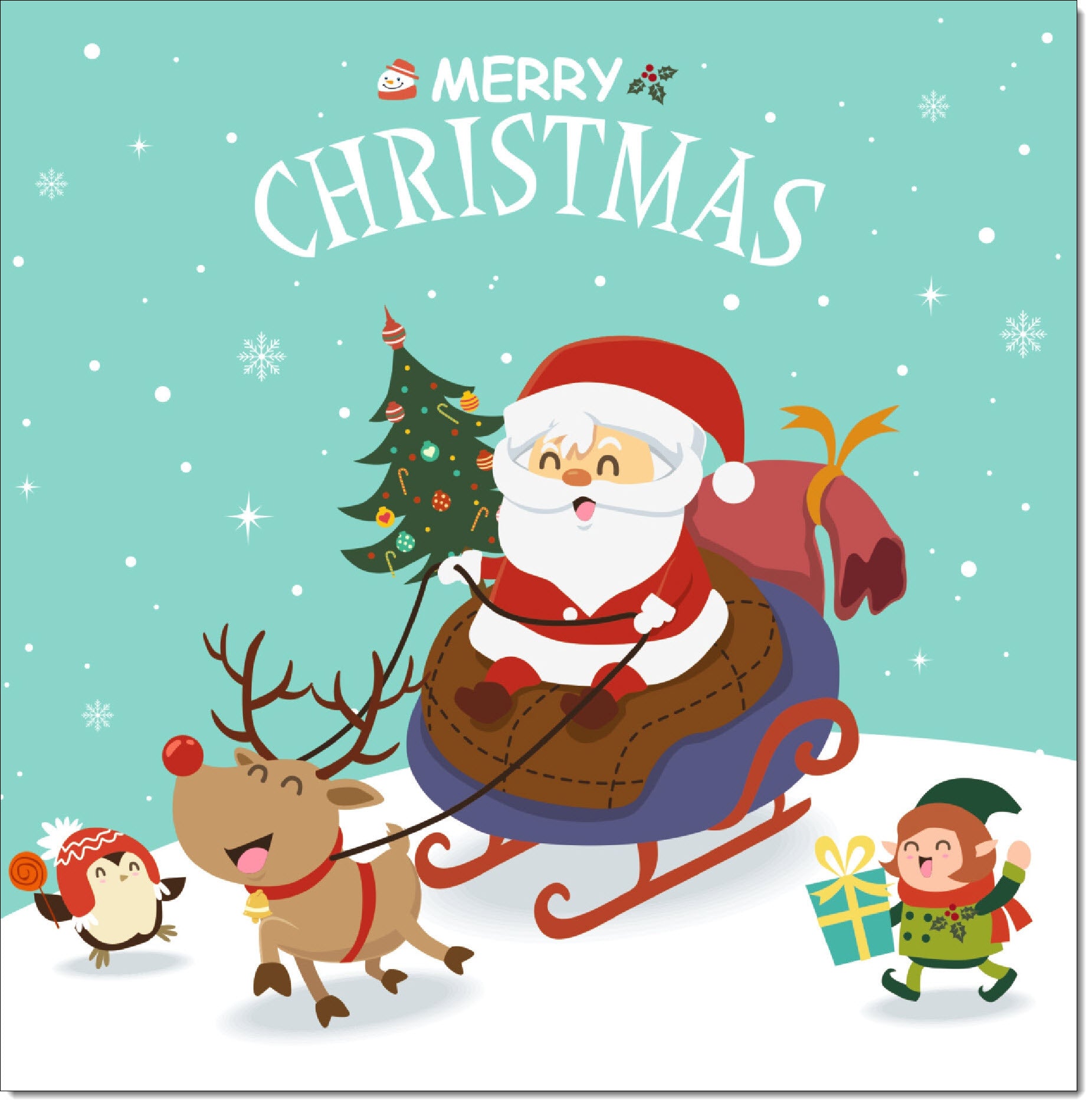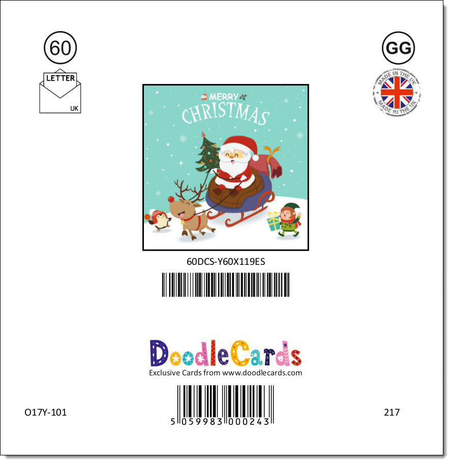 Pack of 10 Square Christmas Cards Santa and Rudolph