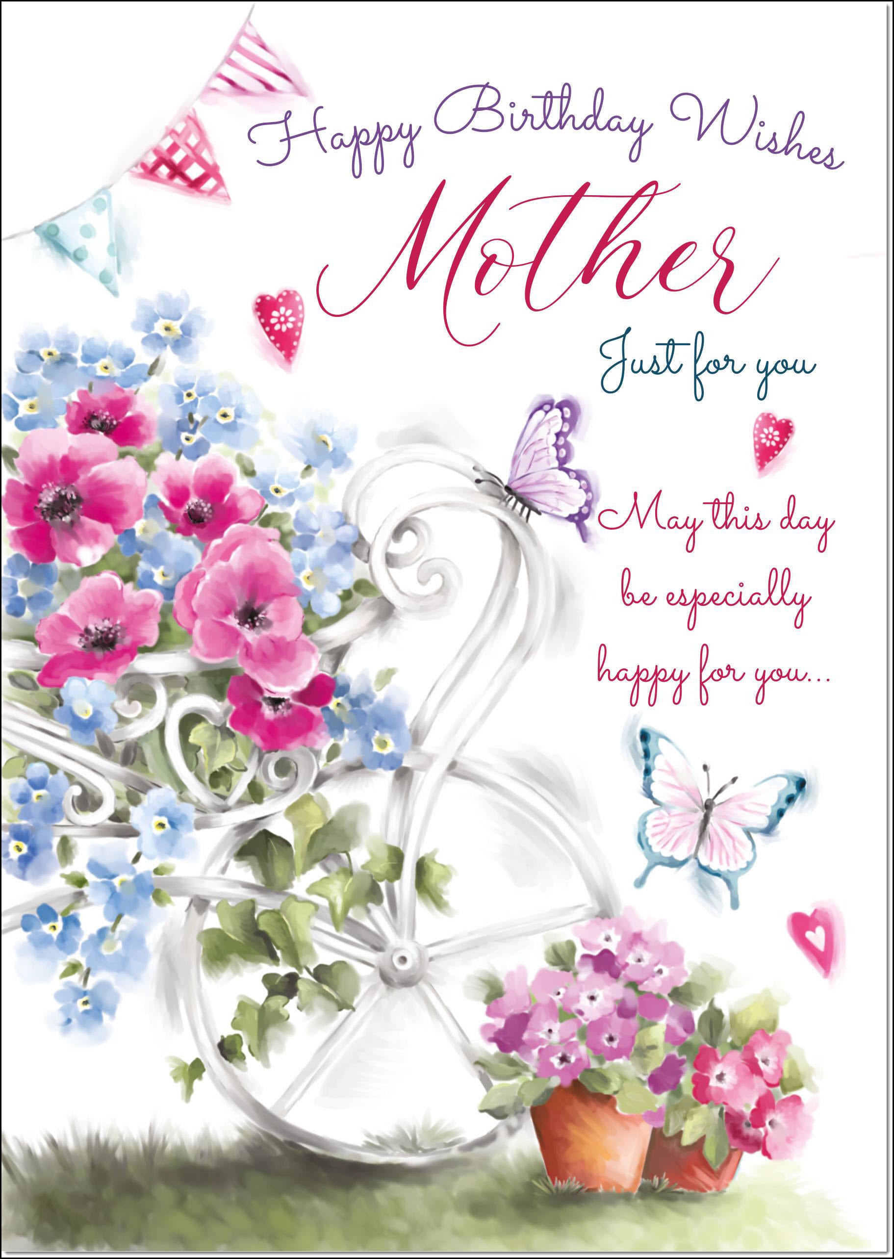 Mother Birthday Card Garden Wheelbarrow Bouquet