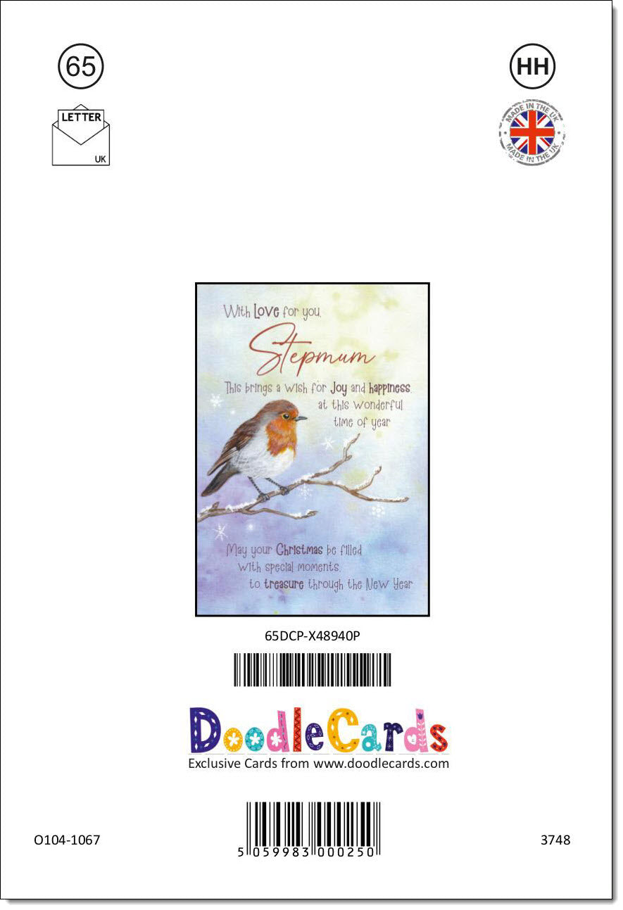 Stepmum Christmas Card Watercolour Robin In The Frost