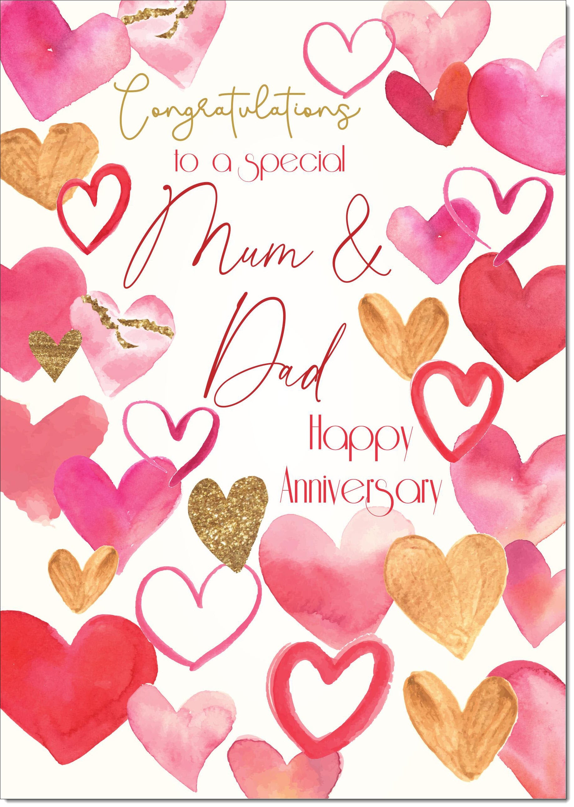 Mum & Dad Wedding Anniversary Card Love Hearts