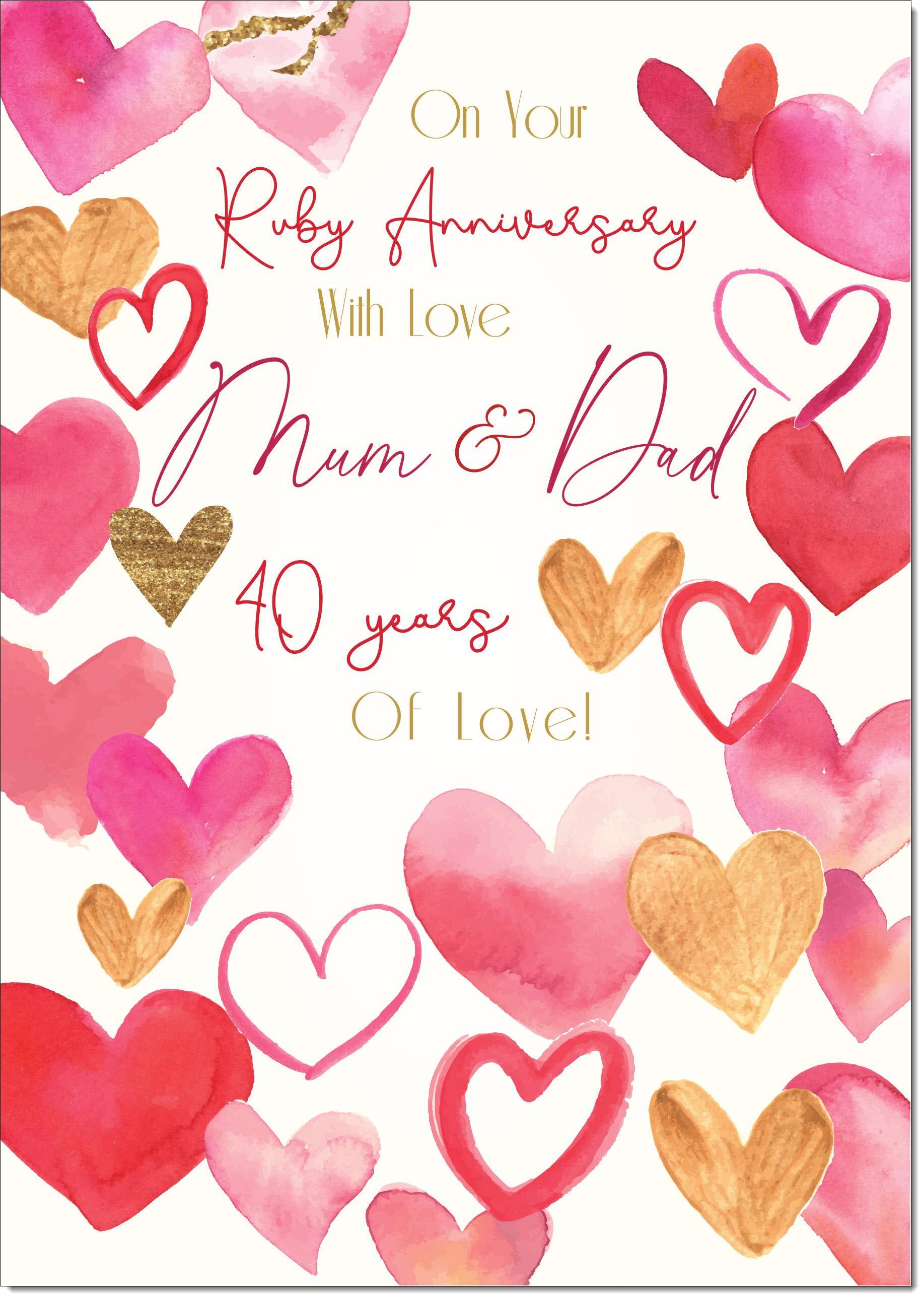 Mum & Dad Ruby 40th Wedding Anniversary Card Love Hearts