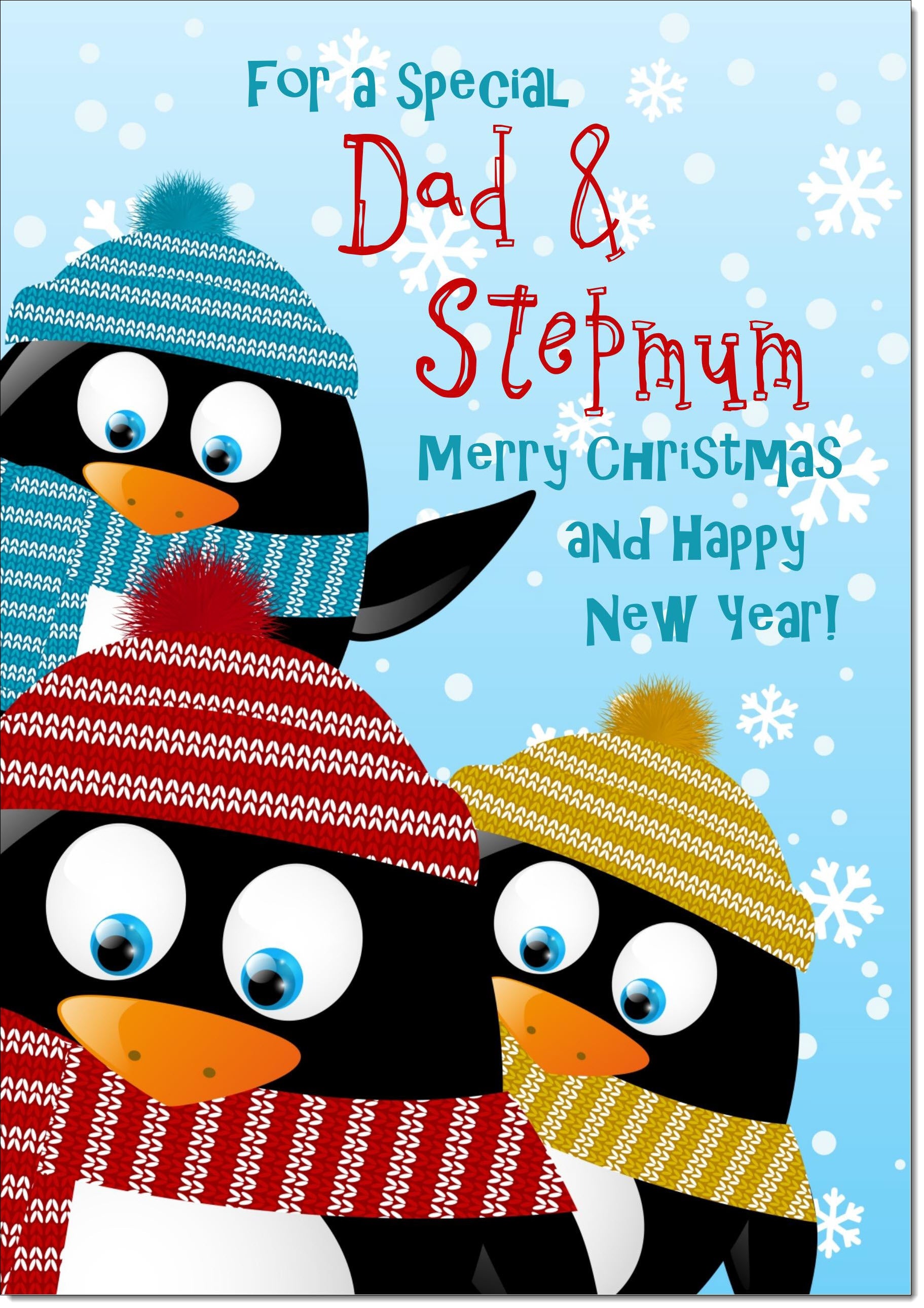 Dad & Stepmum Christmas Card Three Penquins
