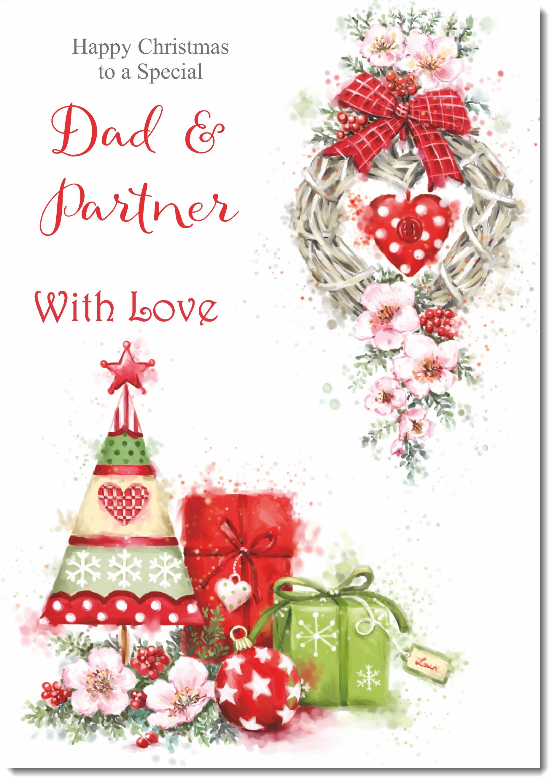 Dad & Partner Christmas Card Hanging Heart Decoration