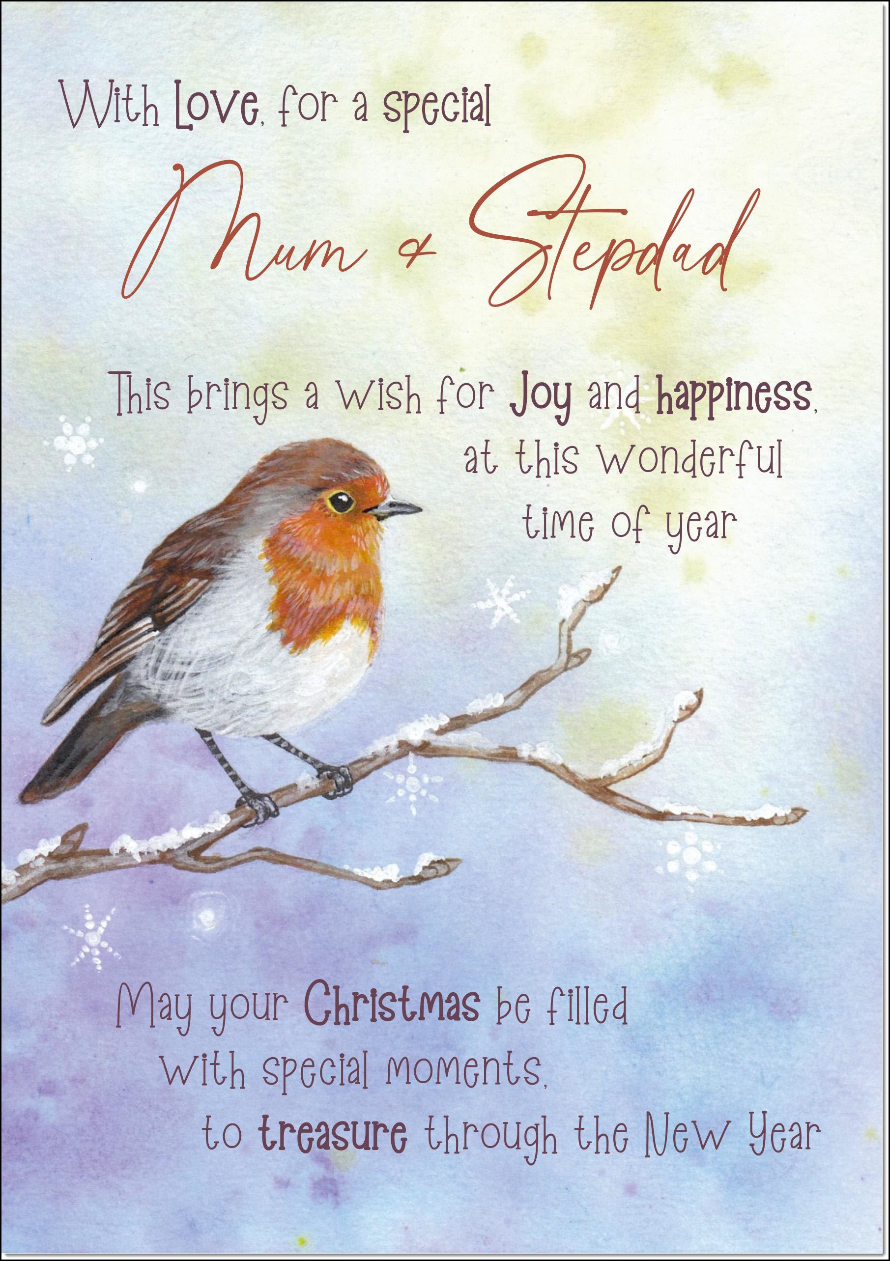 Mum & Stepdad Christmas Card Watercolour Robin In The Frost
