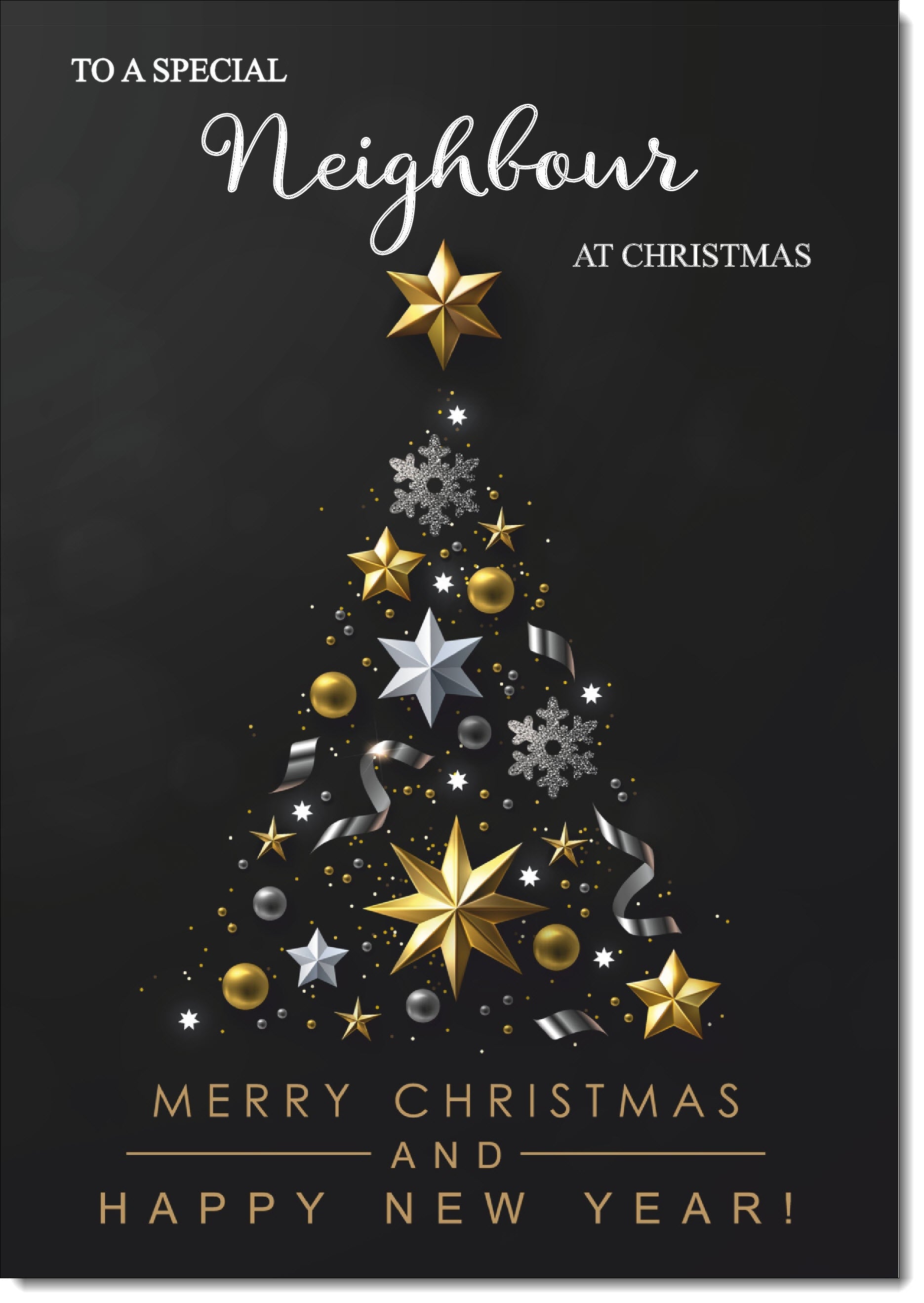 Neighbour Christmas Card Black Abstract Christmas Tree