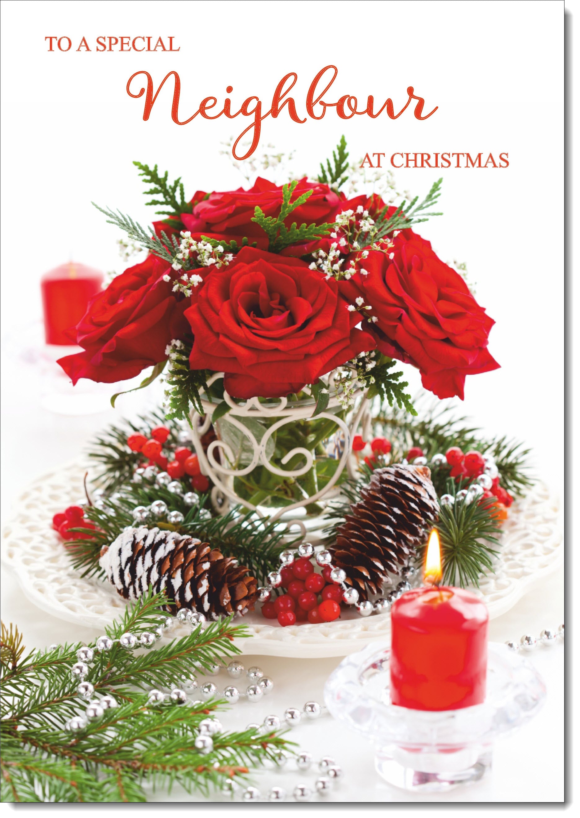 Neighbour Christmas Card Red Roses Christmas Arrangement
