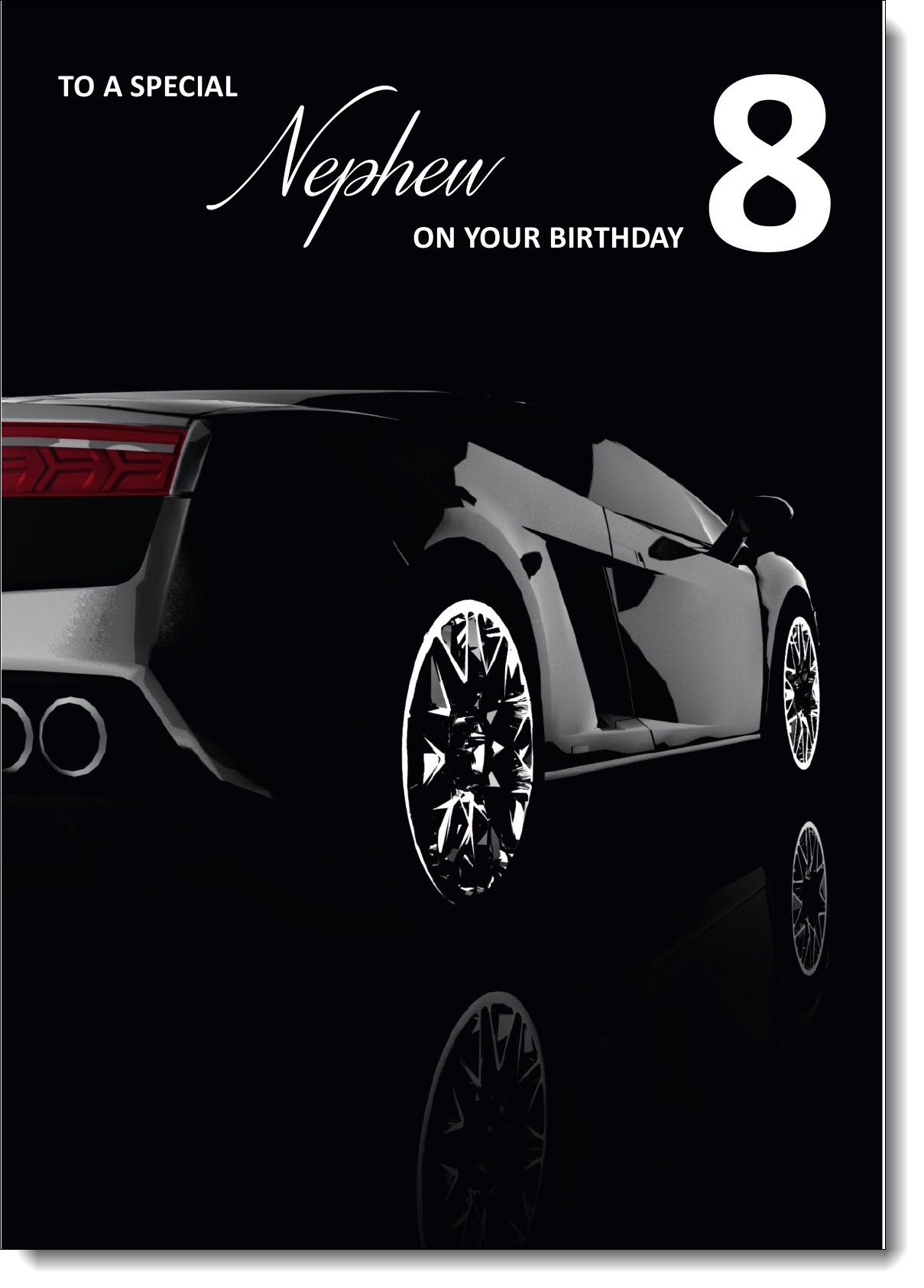 Nephew 8th Birthday Card Age 8 Black Lamborghini