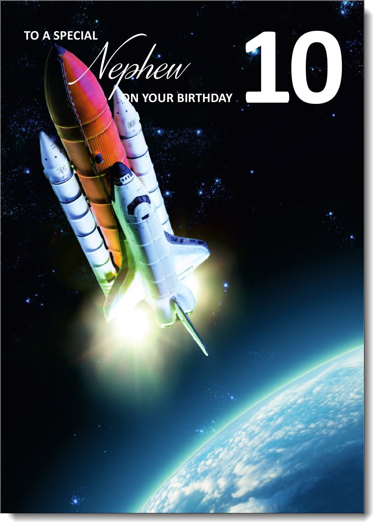 Nephew 10th Birthday Card Age 10 Rocket Ship in Space