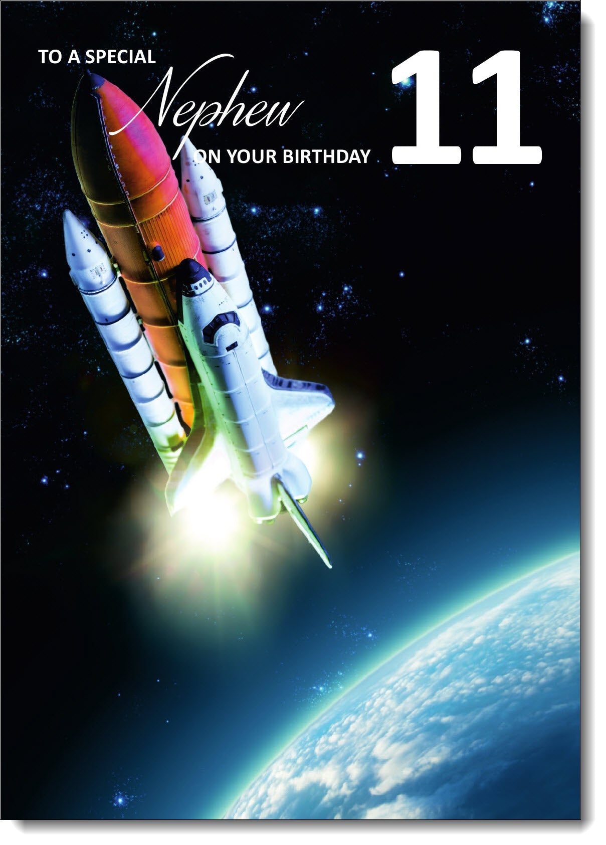 Nephew 11th Birthday Card Age 11 Rocket Ship in Space