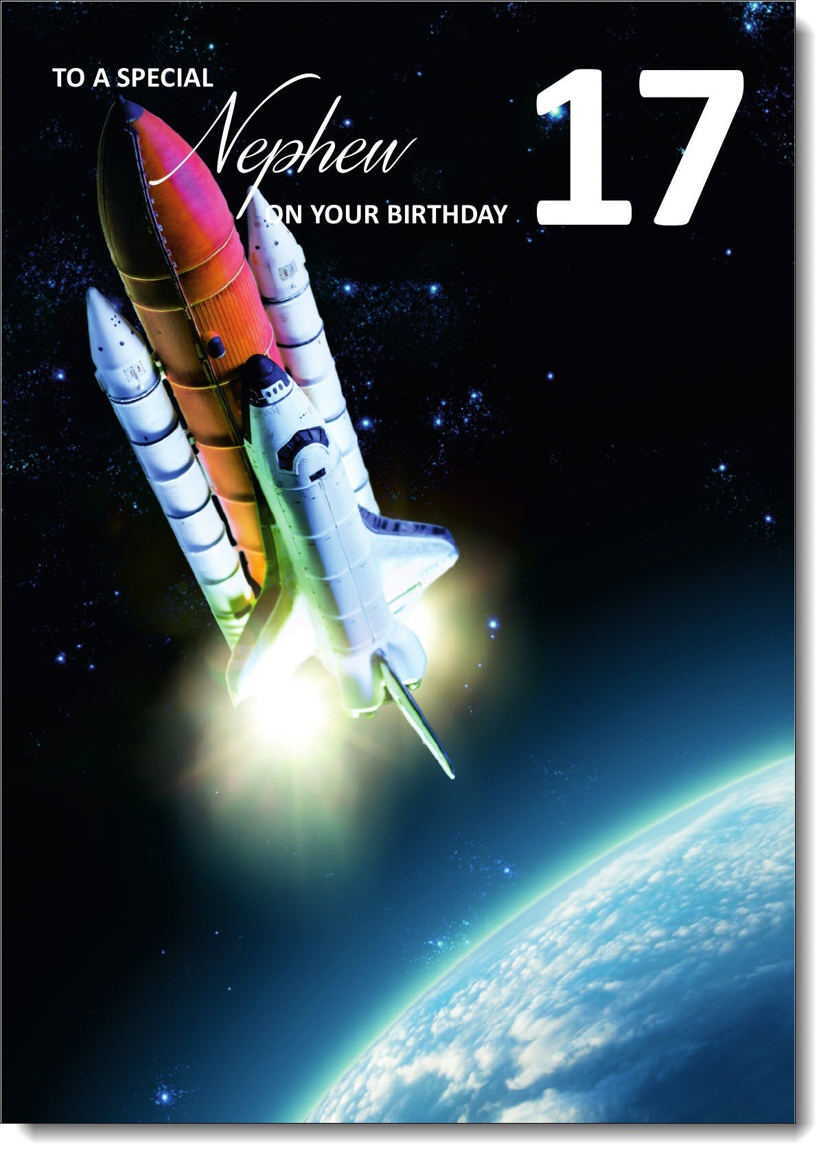 Nephew 17th Birthday Card Age 17 Rocket Ship in Space