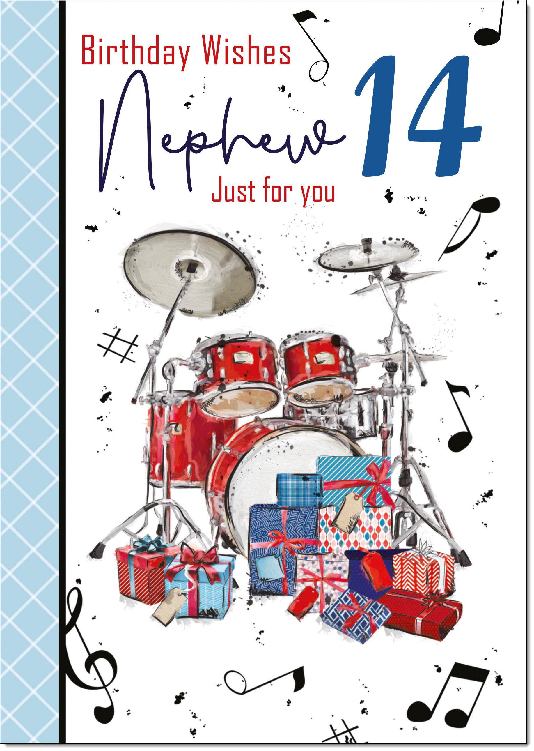 Nephew 14th Birthday Card Age 14 Drumkit