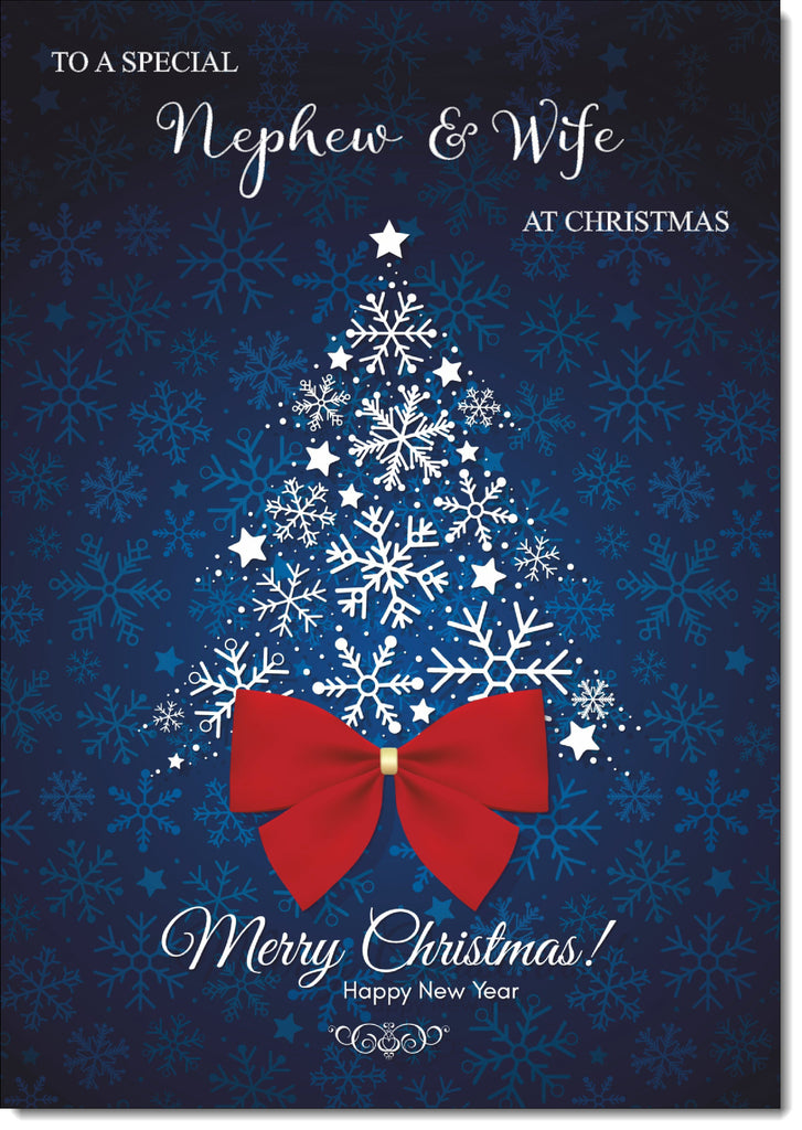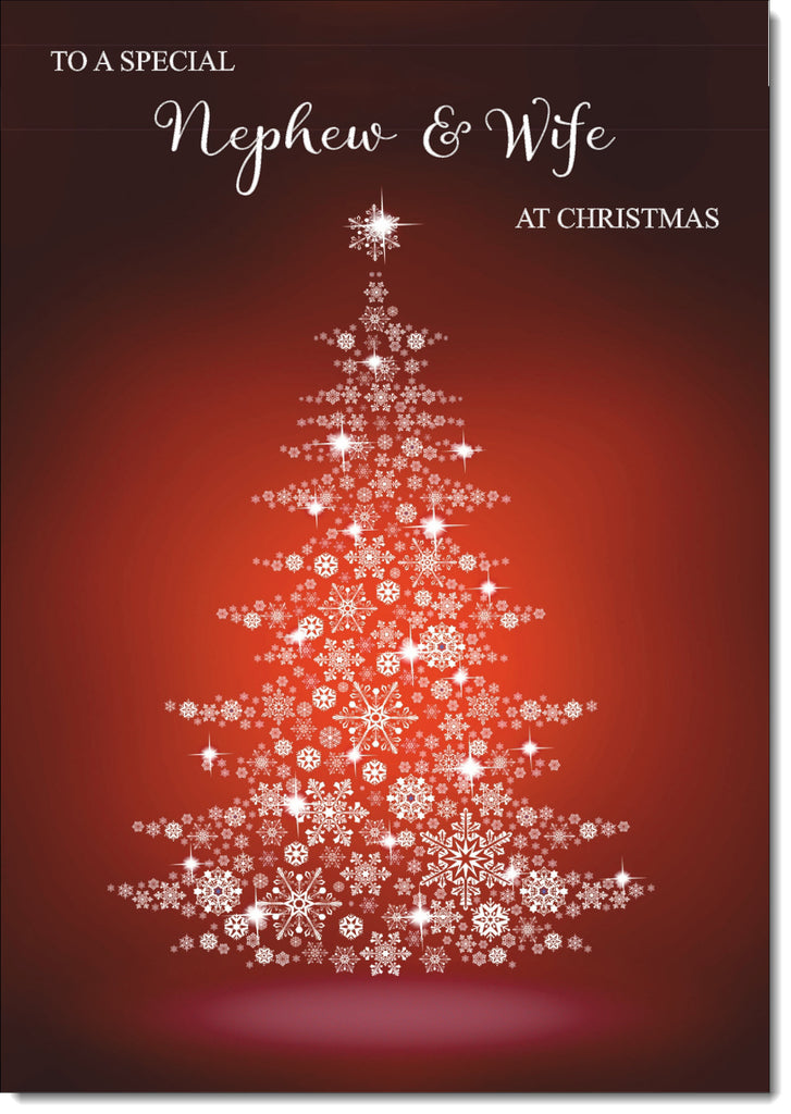 Nephew & Wife Christmas Card Red Snowflake Christmas Tree