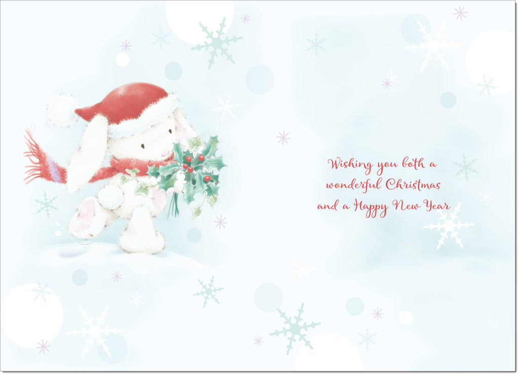 Nephew & Wife Christmas Card Cute Rabbit with Holly