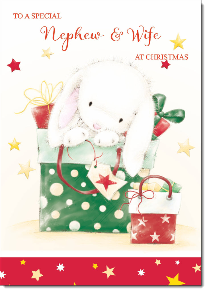 Nephew & Wife Christmas Card Cute Rabbit with Parcels