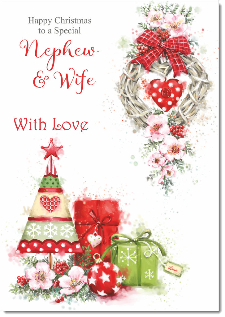 Nephew & Wife Christmas Card Red Christmas Tree