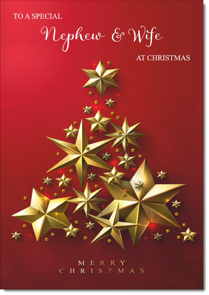 Nephew & Wife Christmas Card Gold Star Christmas Tree