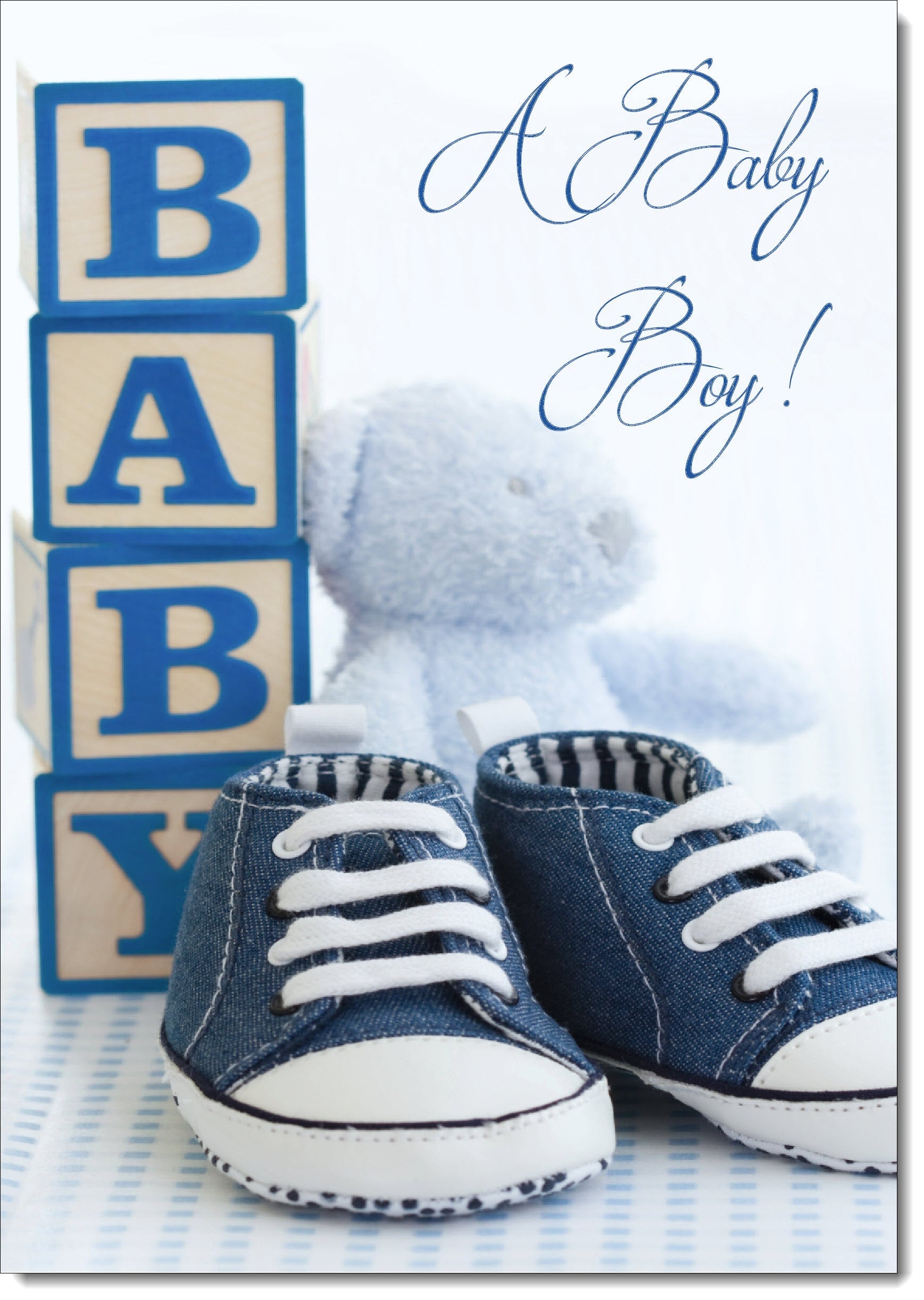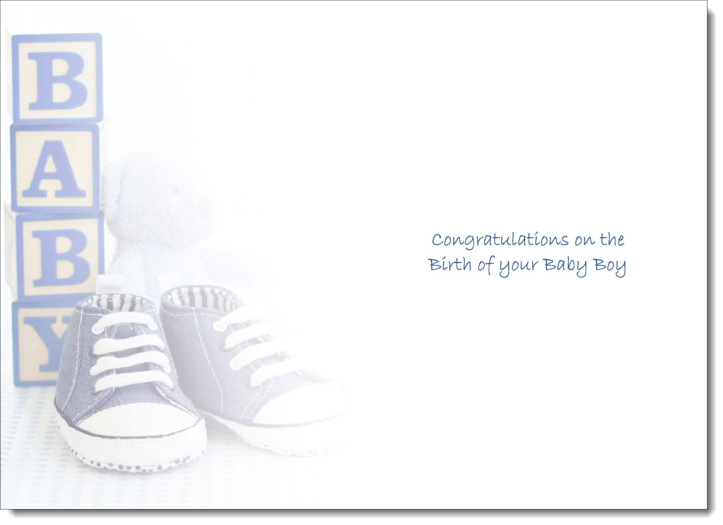 New Baby Boy Birth Congratulations Card Building Blocks and Shoes