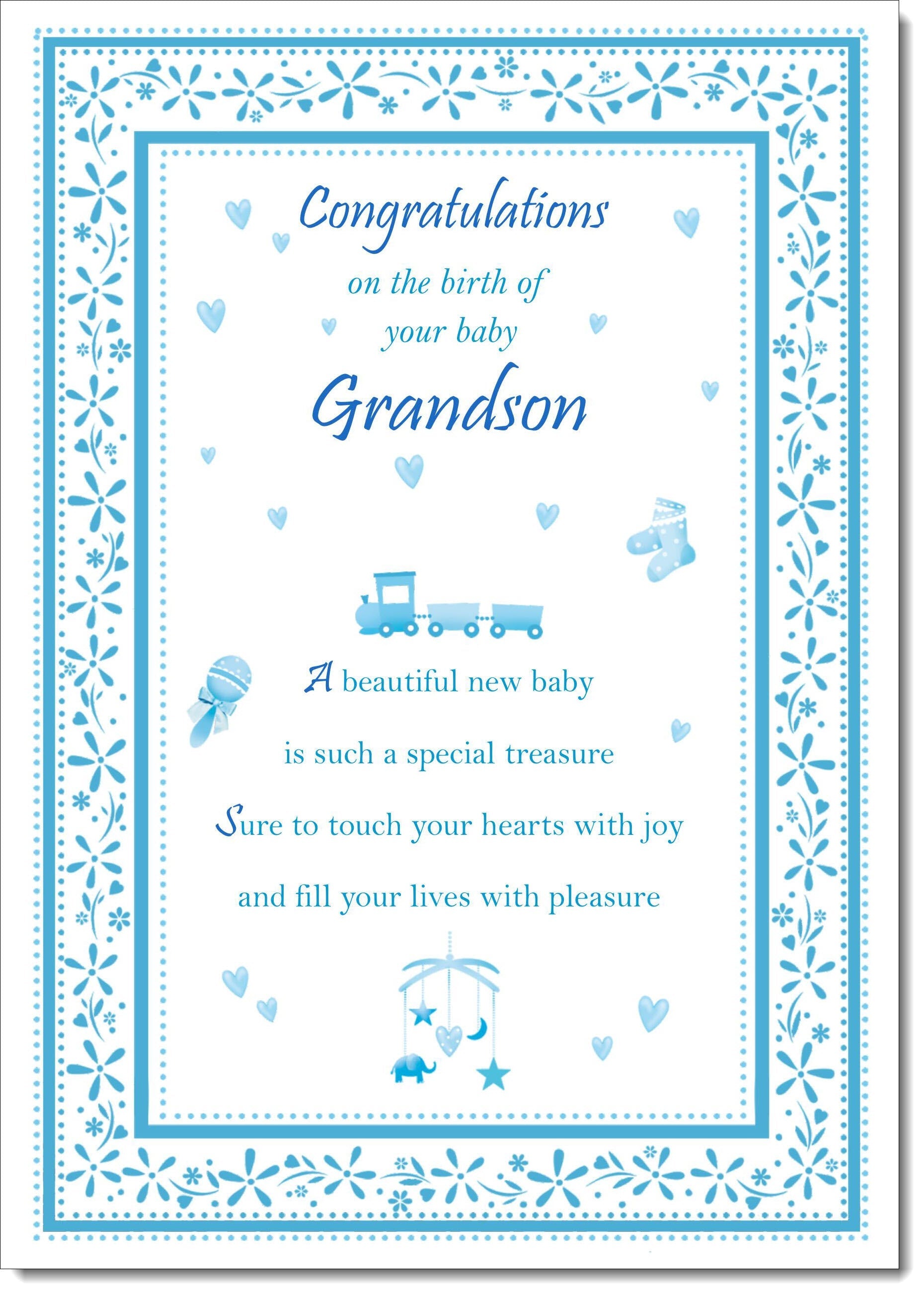 On The Birth Of Your Grandson New Baby Boy Congratulations Card Border