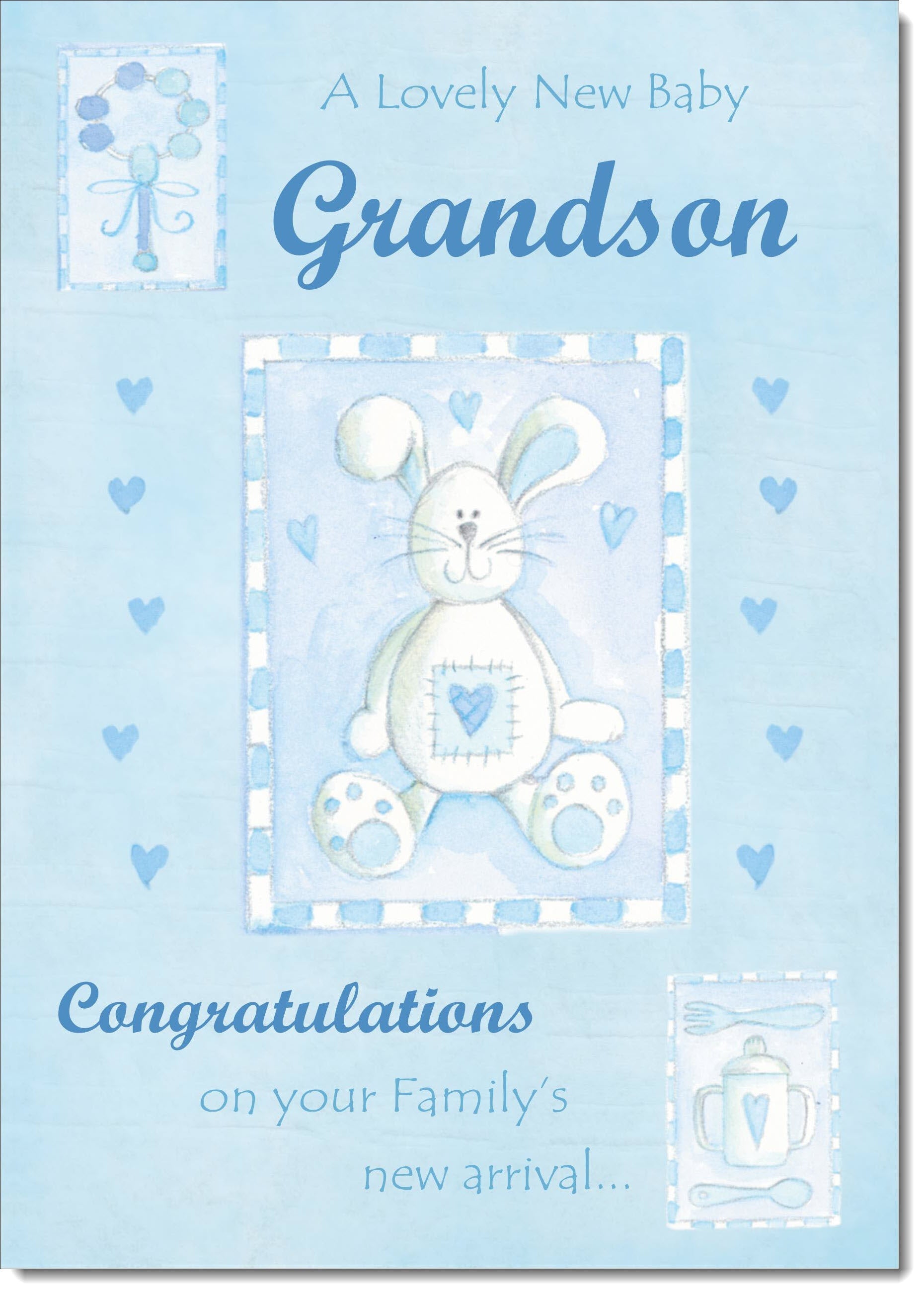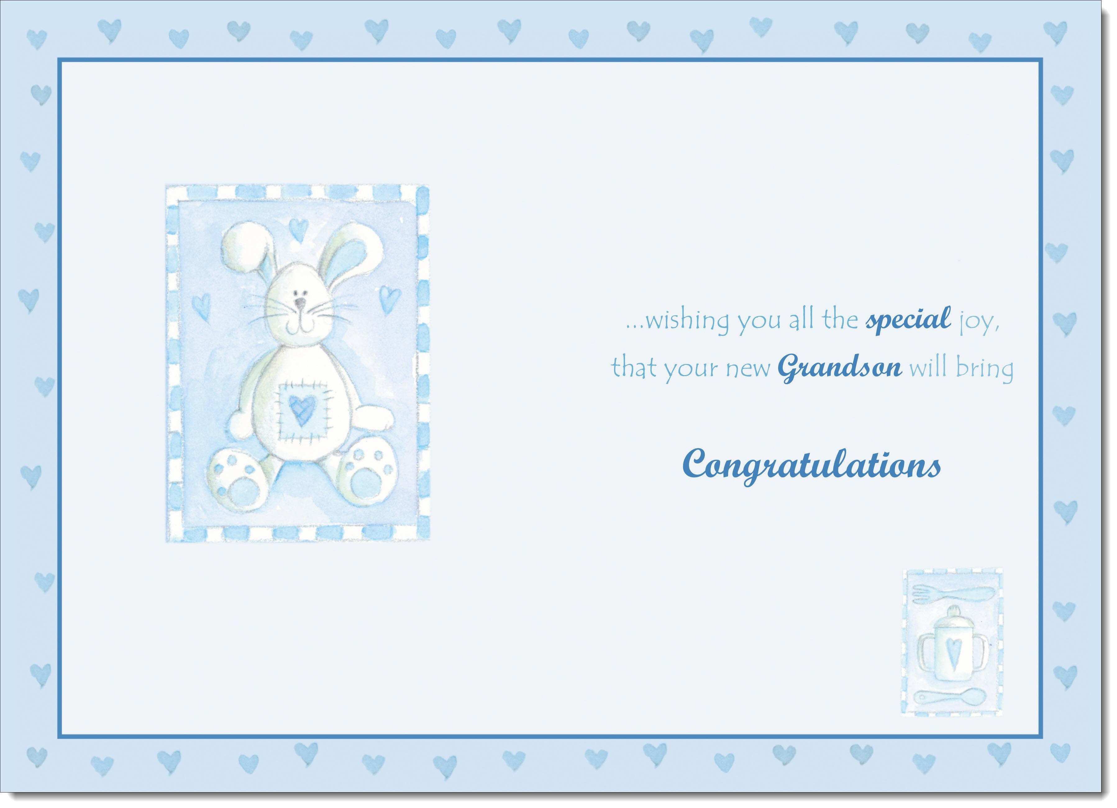 On The Birth Of Your Grandson New Baby Boy Congratulations Card Toy Rabbit