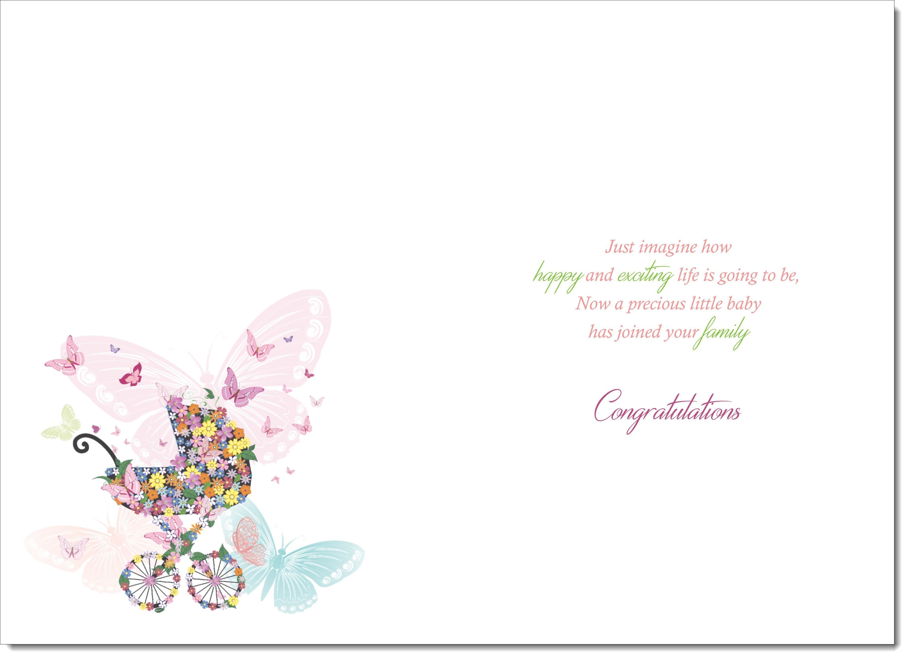 On The Birth Of Your Grandchild New Baby Congratulations Card Butterfly Pram